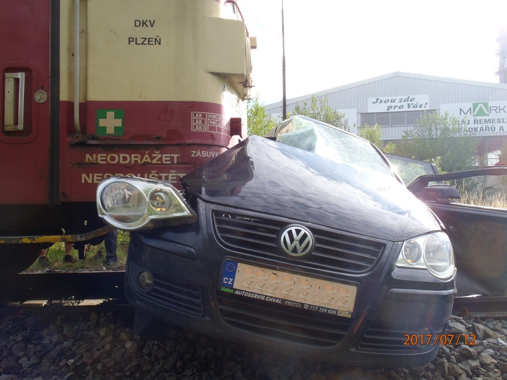 V Klatovech vjela řidička na přejezdu pod vlak, srážku nepřežila