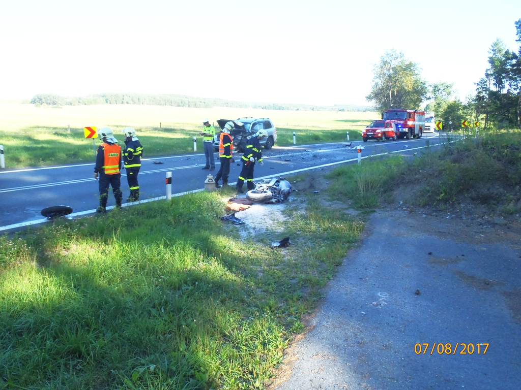 V pondělí 7. srpna 2017 v 17:47 hodin vyjeli hasiči ze stanice v Tachově společně s jednotkou SDH Planá mezi Janov a Novou hospodu k dopravní nehodě motorky a osobního auta.