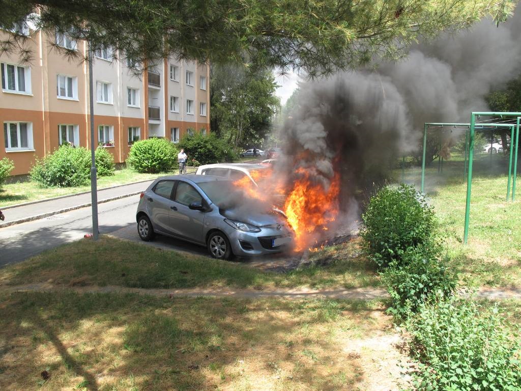 Ve čtvrtek 15. června 2017 v 14:15 hodin vyhlásilo operační středisko poplach hasičům v Plzni na stanici Střed a vyslalo je do Sídliště Doubravka k požáru 3 osobních aut.