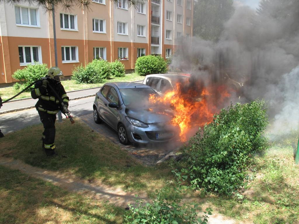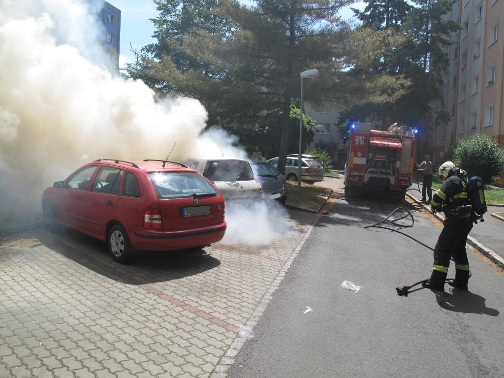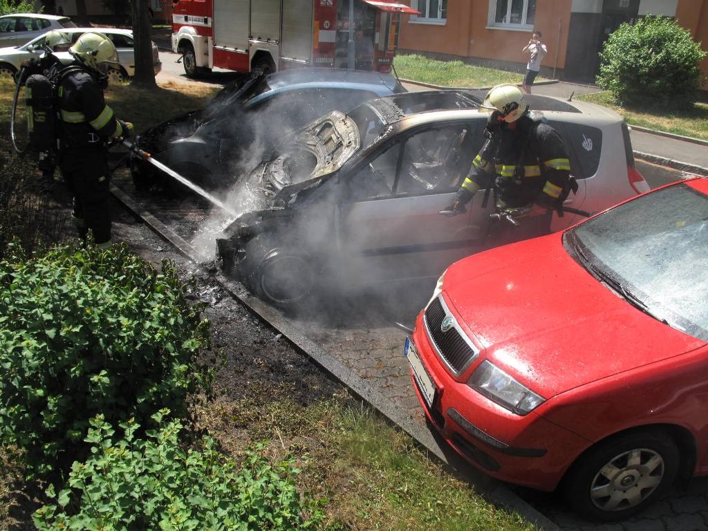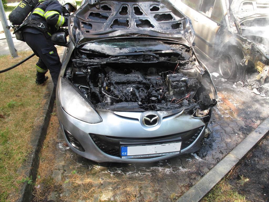 V Plzni oheň zničil tři zaparkovaná auta