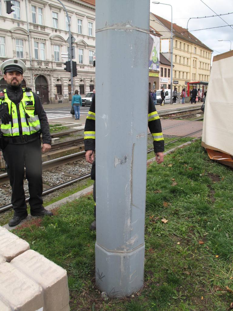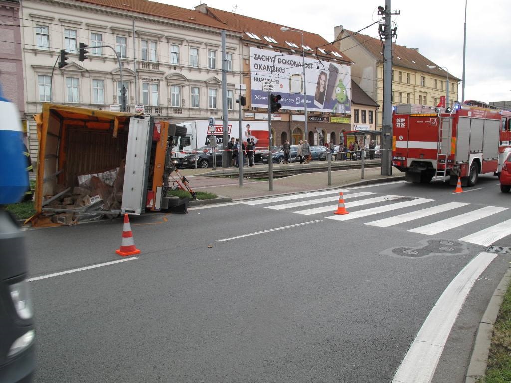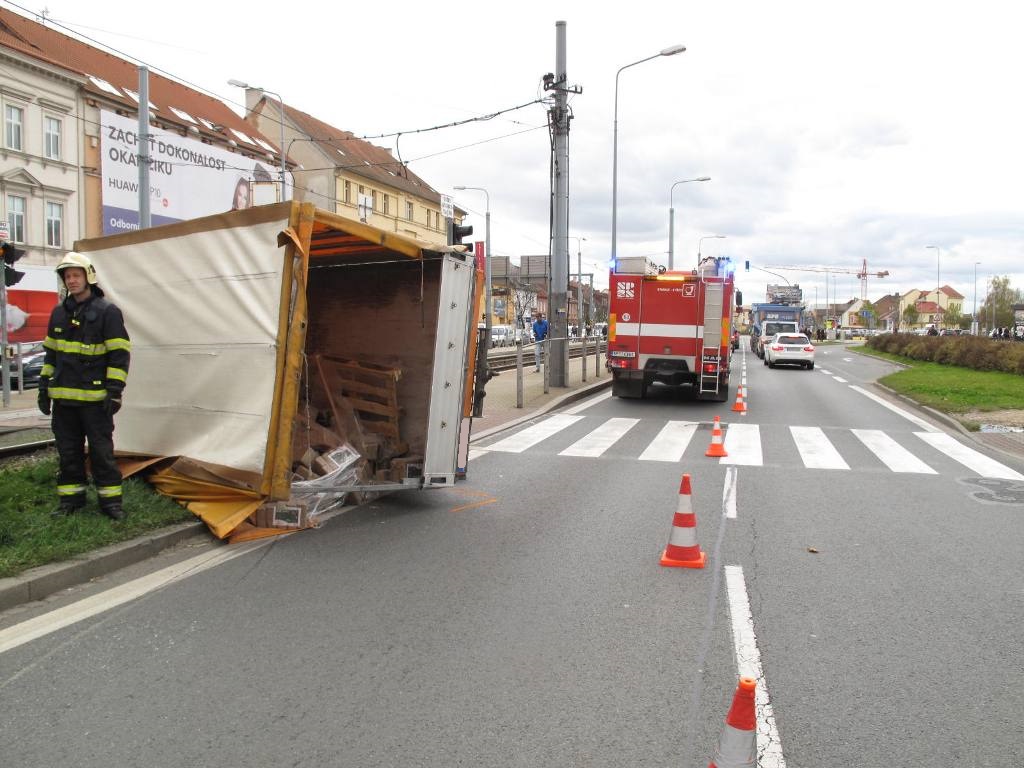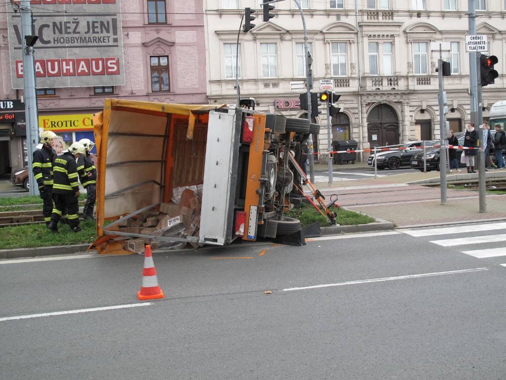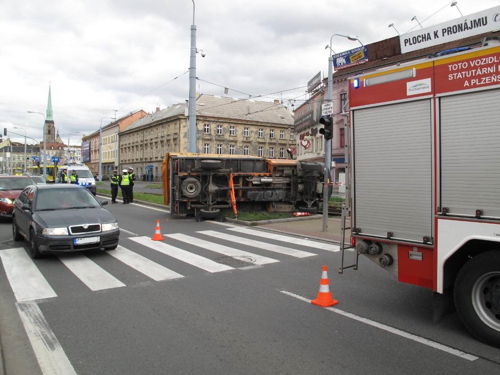 V úterý 31. října 2017 po půl druhé odpoledne zasahovali hasiči z PS Střed společně s hasiči SŽDC Plzeň v centru Plzně u dopravní nehody dodávky, která se na Paleckého náměstí mezi křižovatkou Jízdecká a tramvajovou zastávkou převrátila na bok a zablokovala kolejiště směrem na Skvrňany.