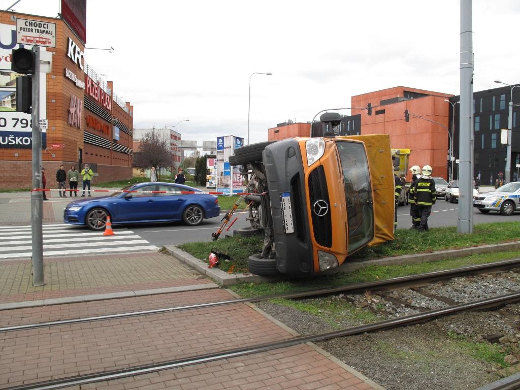V Plzni se převrátila dodávka do kolejí tramvaje