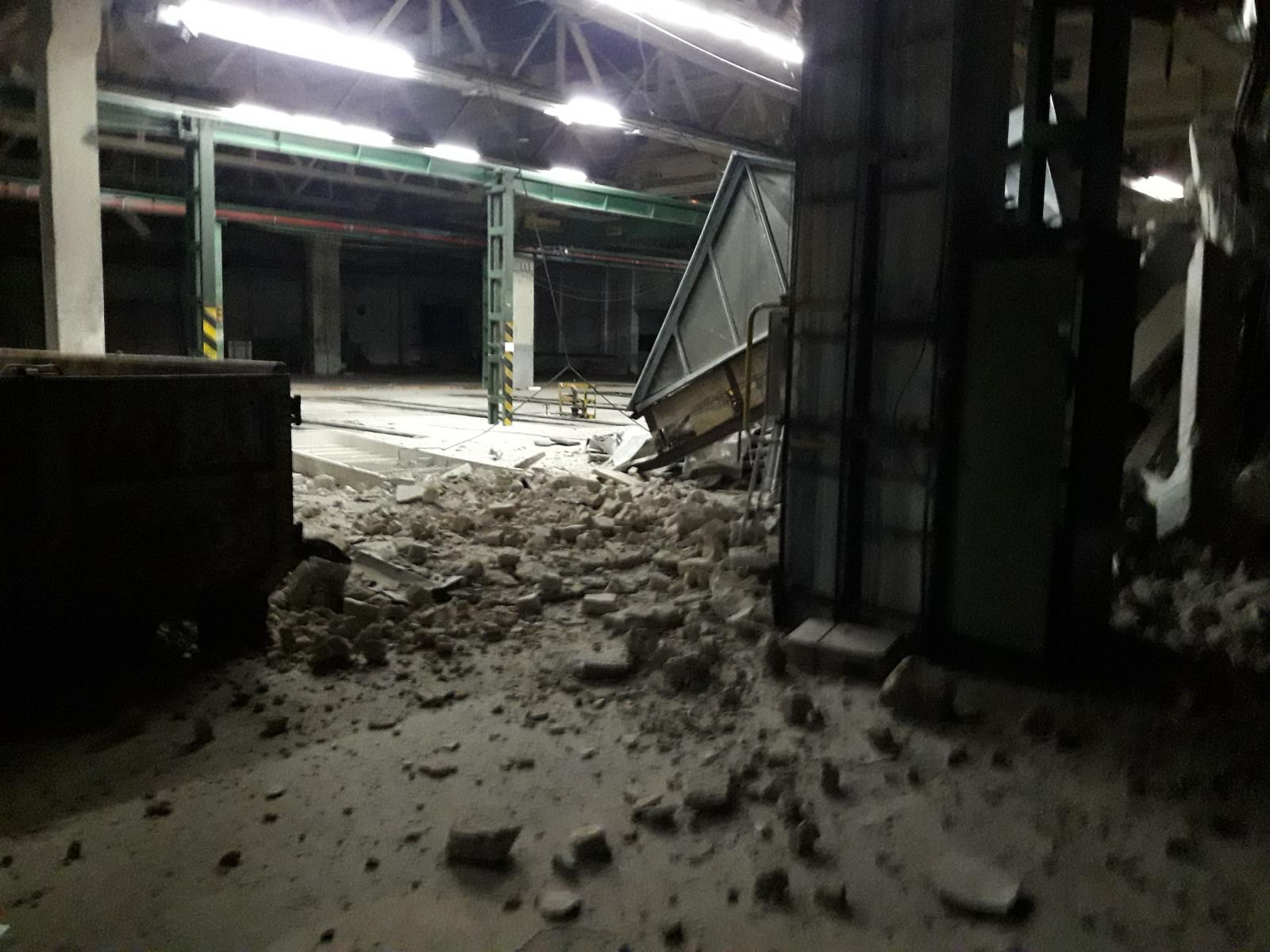 Došlo zde k propadnutí části střechy v jedné z hal. Dle informací z místa zásahu se jednalo o část velkou zhruba 5 x 12m. Pádem střechy nebyl nikdo bezprostředně zraněn, nicméně bylo zapotřebí povolat kynologickou službu za účelem vyloučení možnosti, že by se pod sutinami někdo nacházel.
