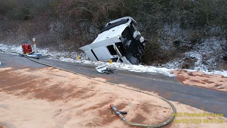 Kamion havaroval mimo silnici a kabina se po nárazu oddělila. Řidič zůstal uvězněn a hasiči jej vyprostili. Do příkopu uniklo asi dvě stě litrů nafty. Zásah provázela dopravní omezení.