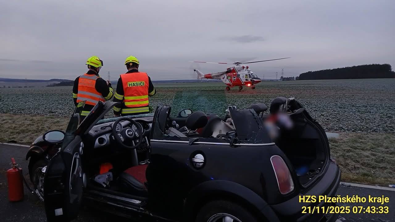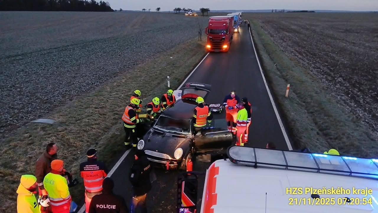 V pátek 21. listopadu 2025 krátce před sedmou hodinou ranní vyjížděly záchranné složky k vážné dopravní nehodě na silnici č. 230 mezi Stodem a Vsí Touškov. Osobní automobil tam po nezjištěné příčině havaroval a zůstal mimo komunikaci. Řidič byl v kabině zaklíněný a nedokázal se dostat ven vlastními silami. Situace vyžadovala okamžitý zásah hasičů i zdravotníků.