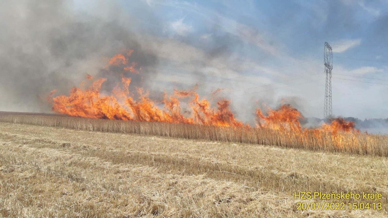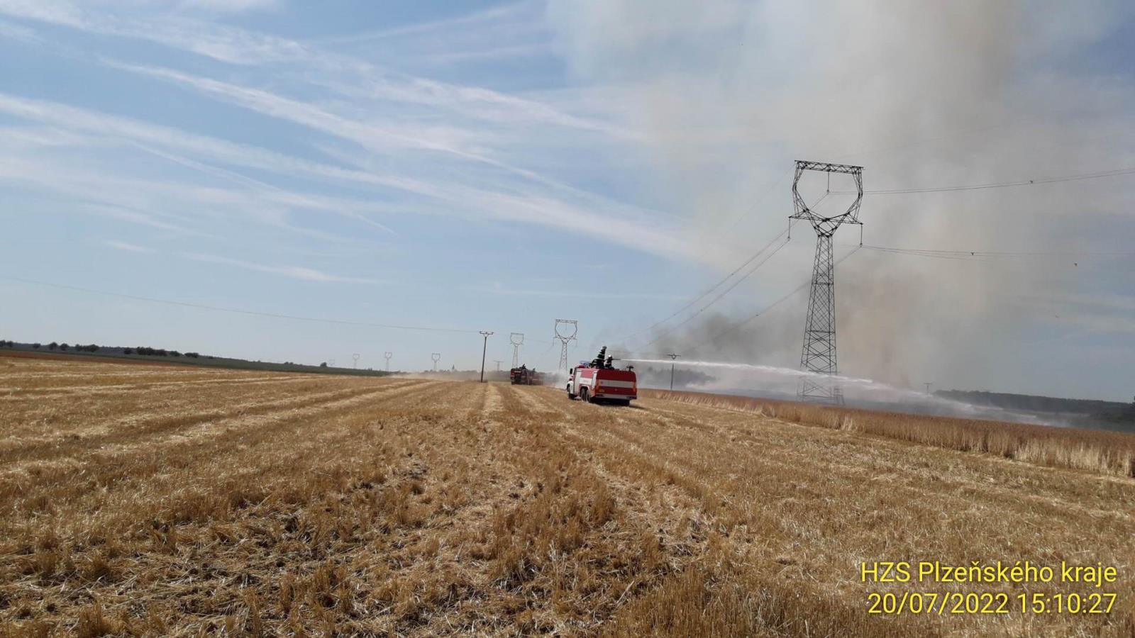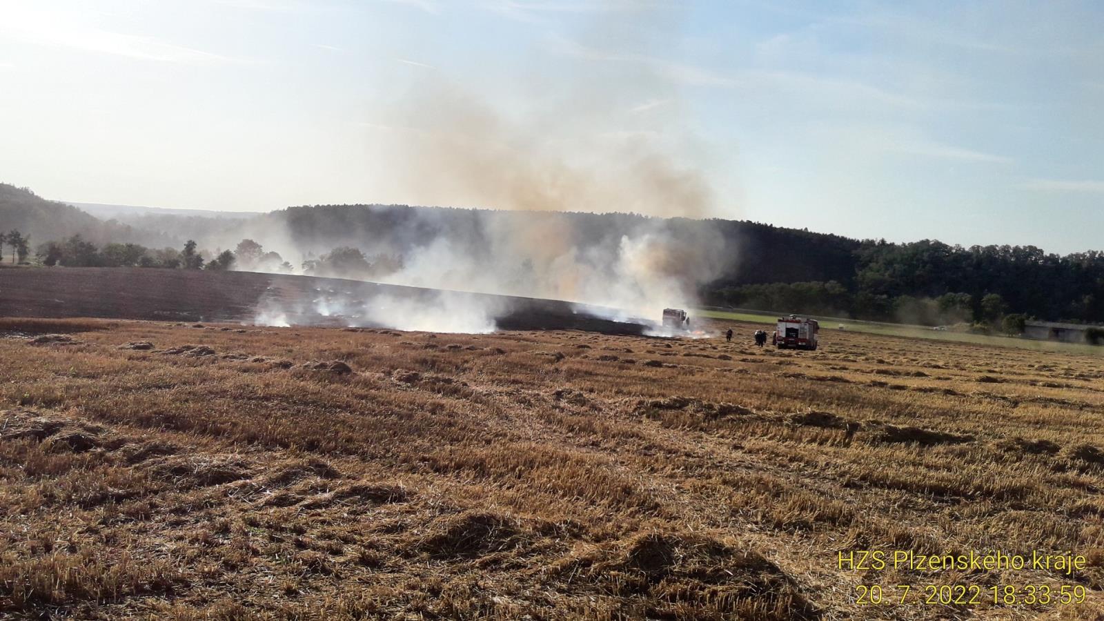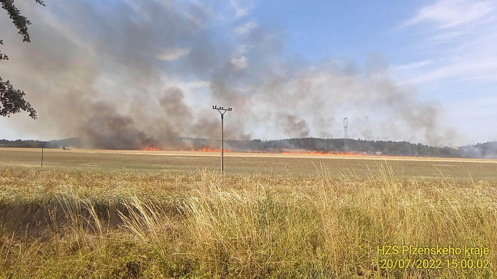 Druhým velkým požárem včerejšího dne byl požár pole s pšenicí nedaleko Nedražic. Oheň zasáhl plochu 18ha a způsobil škodu přes 1mil. Kč. Jeho příčinou byla technická závada na kombajnu. Zasahovalo devět jednotek hasičů.