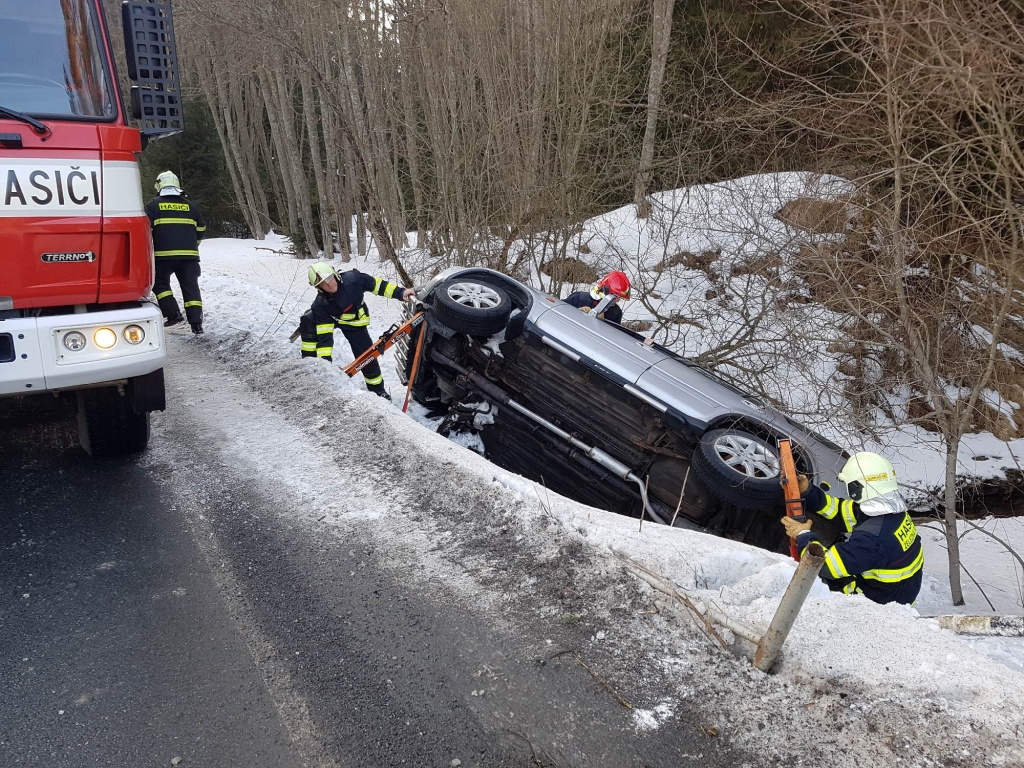 K dopravní nehodě jednoho osobního vozu bez zranění vyjela 4 března 2018 za Novou Hůrku jednotka PS Železná Ruda.