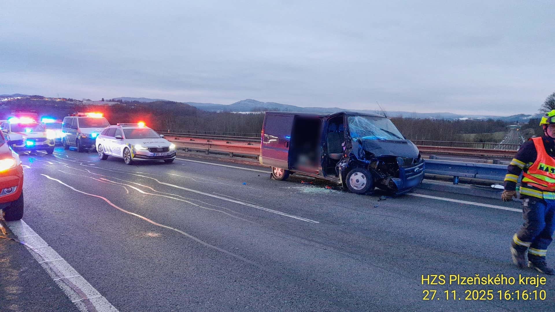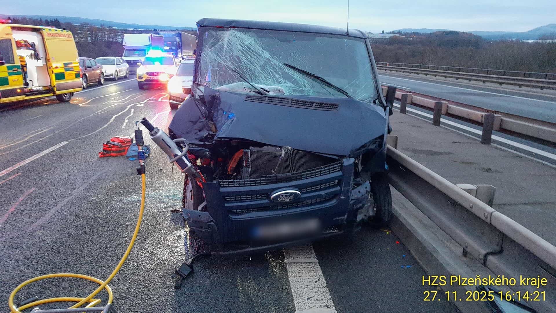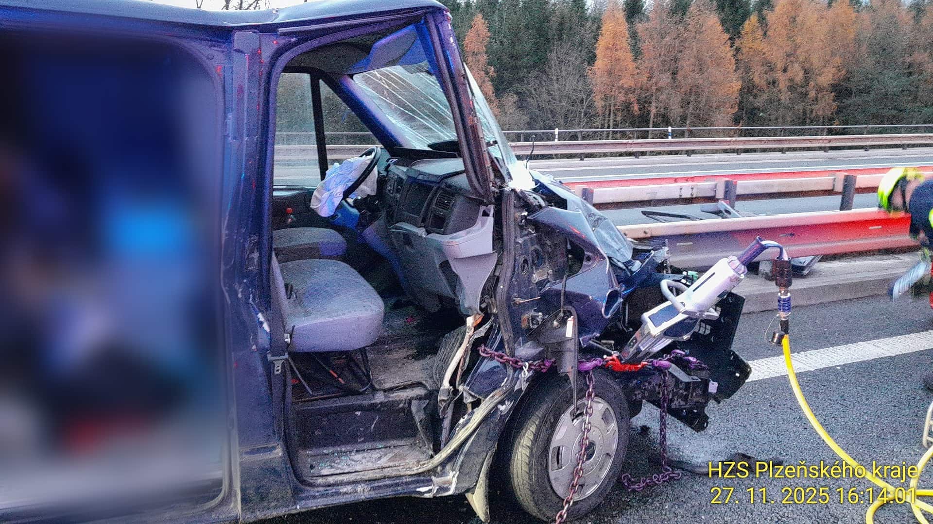 Ve čtvrtek 27. listopadu odpoledne vyráželi hasiči ze stanice Rokycany k hlášené dopravní nehodě na 64. kilometru dálnice D5 ve směru na Rozvadov. Podle oznámení zůstaly v dodávkovém automobilu zaklíněné dvě osoby, což situaci řadilo mezi události s vysokým rizikem z prodlení. Po příjezdu potvrdili střet dodávky s nákladním vozidlem a okamžitě zahájili záchranné práce.