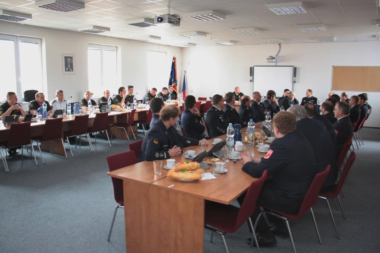 V úterý 26.3.2019 zavítali na návštěvu k HZS Plzeňského kraje velitelé dobrovolných jednotek zemského okresu Cham. Na krajském ředitelství se jich ujal plk. Ing. Jiří Bártek, náměstek krajského ředitele pro IZS a operační řízení, který je v kostce seznámil s fungováním HZS Plzeňského kraje, se schématem služeb ve 24 hodinovém a 12ti hodinovém režimu. Dále velitele seznámil s vybavením jednotek v Plzeňském kraji a charakteristikou výjezdů za posledních několik let. Vzhledem k faktu, že se jednalo o velitele jednotek, s nimiž přichází hasiči v Plzeňském kraji do kontaktu v rámci příhraniční spolupráce, bylo nejdůležitějším bodem programu seznámení se systémem řízení zásahu a označení velících kádrů u zásahu. Ujasnění si toho, jakým způsobem je označován velitel zásahu na naší straně hranice a na straně SRN, popřípadě označení velících důstojníků, značně zefektivní spolupráci jednotek při společných zásazích, usnadní přenos důležitých informací v průběhu zásahu a zlepší koordinaci sil a prostředků. Závěr návštěvy německých kolegů patřil představení činnosti operačního a informačního střediska, ukázce vybavení velitelsko - spojového vozidla a exkurzi na hasičské stanici Plzeň -Košutka. Zdroj: Mgr. Petr Poncar – HZS Plzeňského kraje Foto: HZS Plzeňského kraje FOTOGALERIE