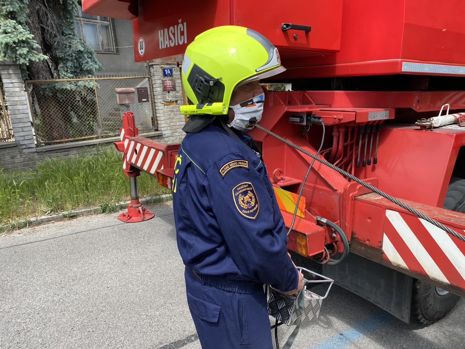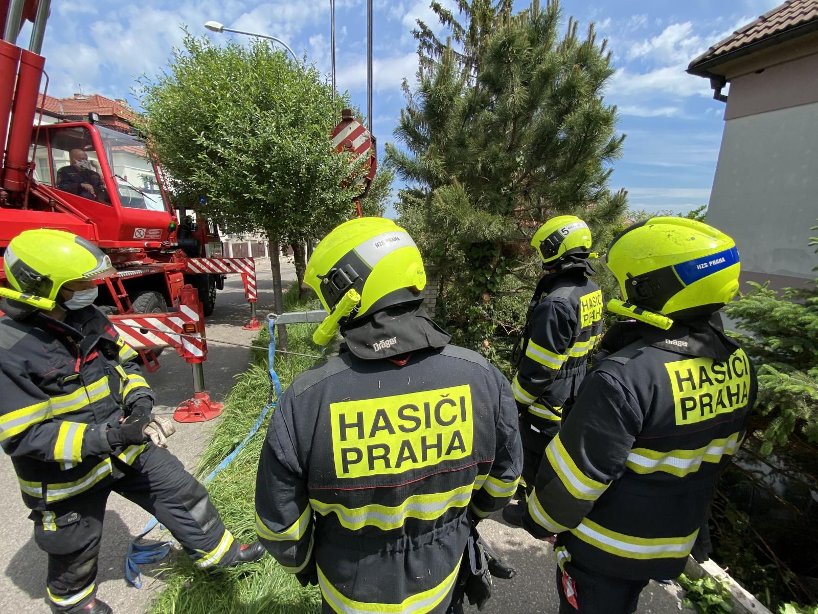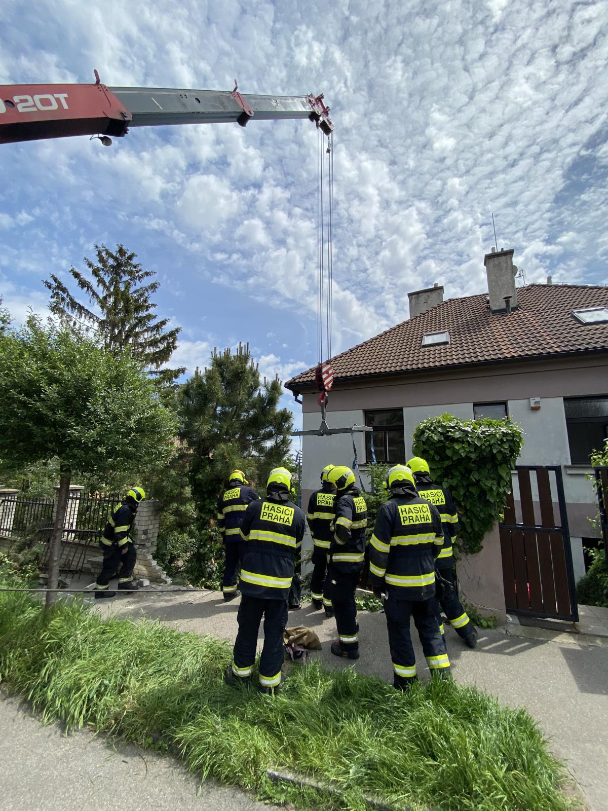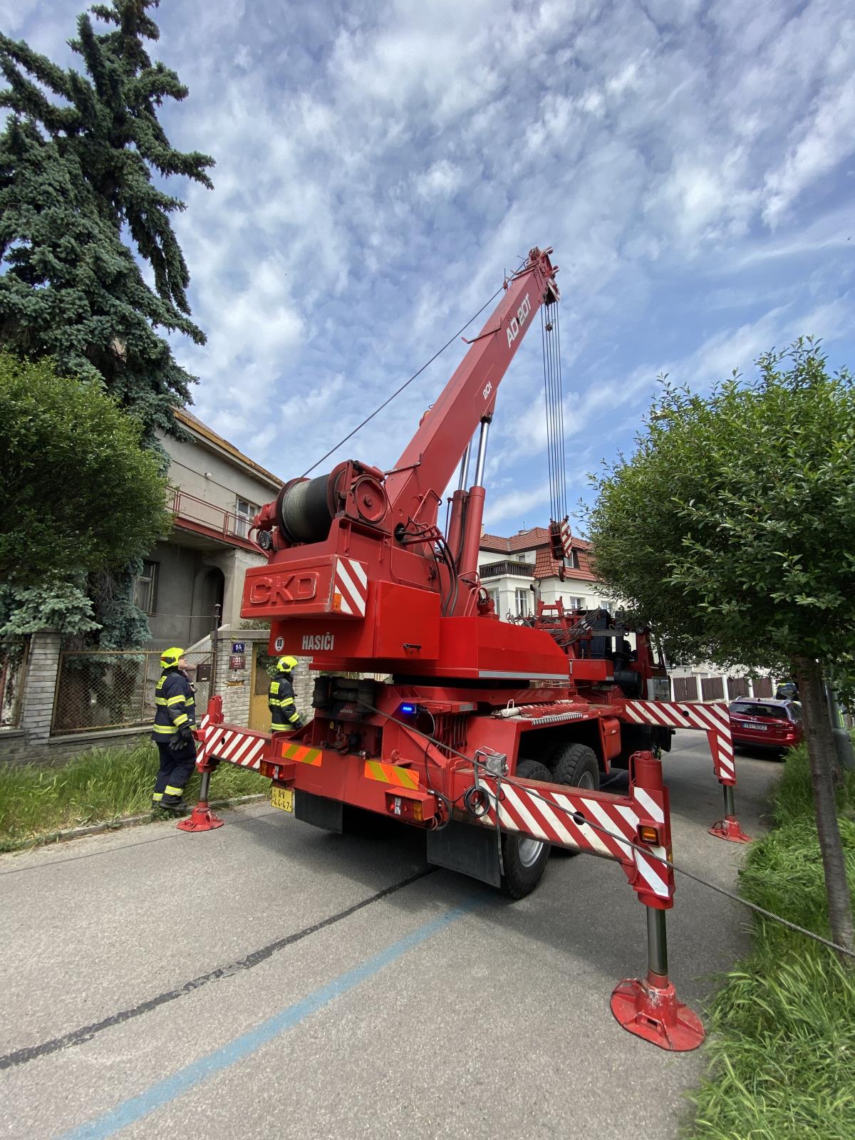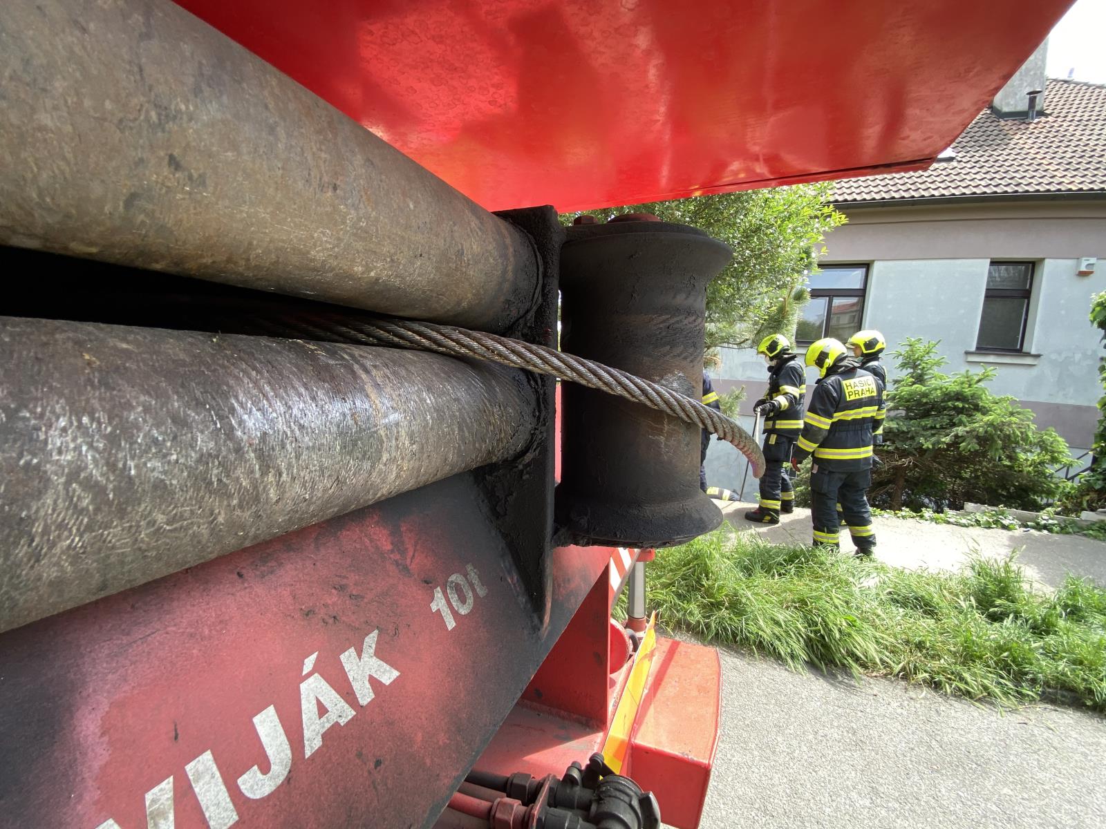 S ohledem na to, že automobil byl v prudkém srázu domu a ve špatně přístupném terénu, povolal velitel zásahu na místo jeřáb. Vyproštění trvalo asi 30 minut, hasiči postupovali opatrně, aby nedošlo k poškození fasády domu.