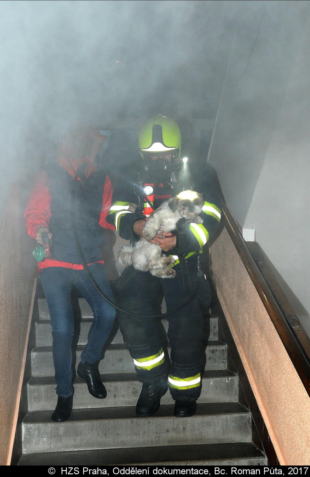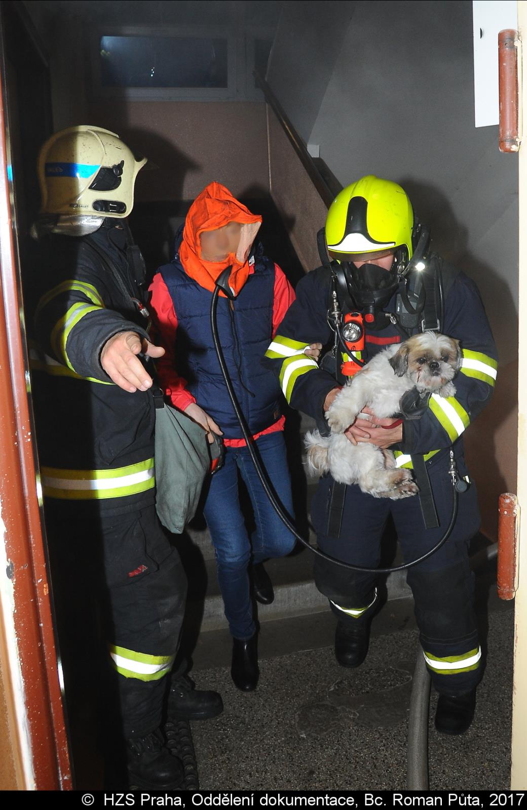 Během požáru bytu bylo zachráněno 5 osob a pes