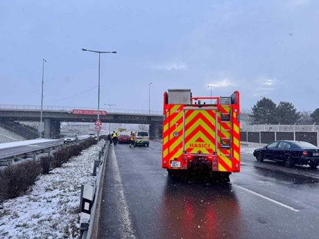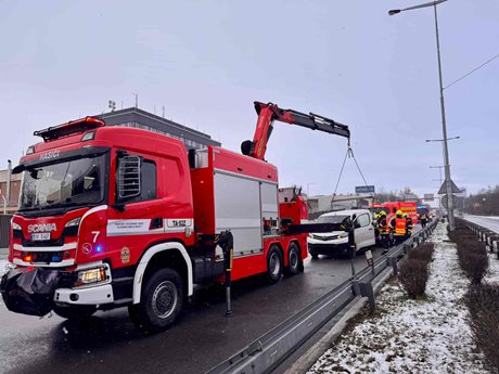 Chaos na Rozvadovské spojce, hasiči zasahovali u čtyř vozidel