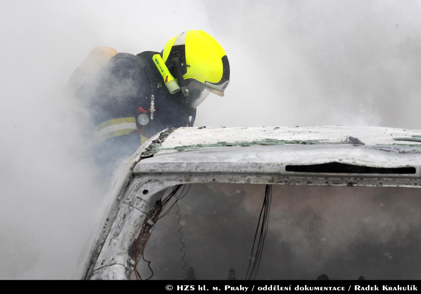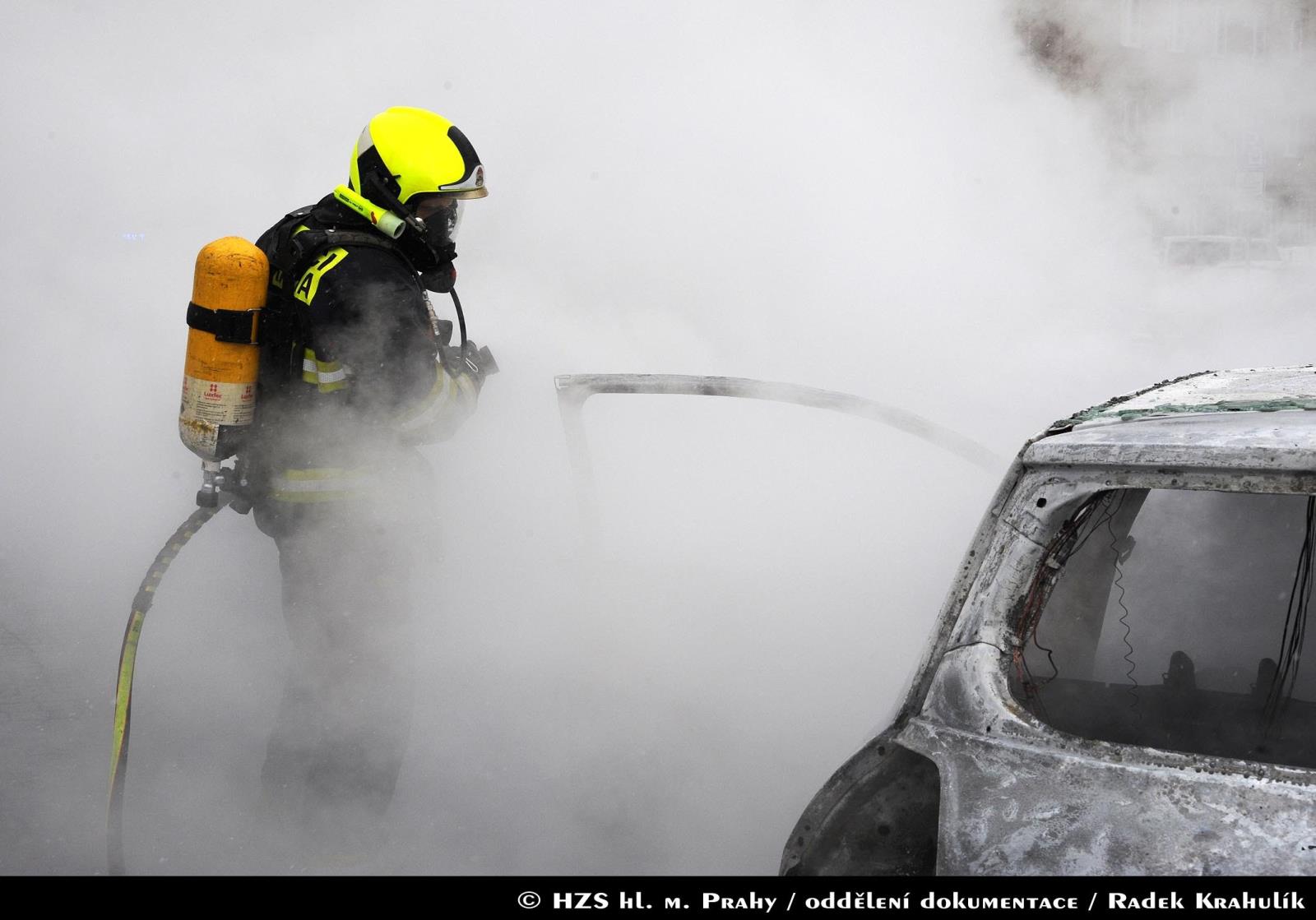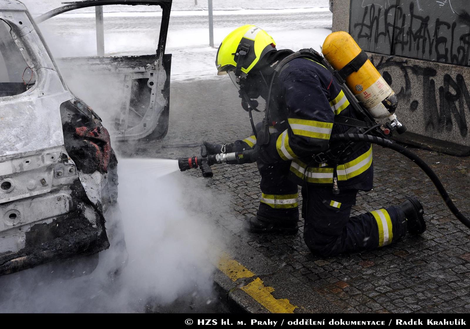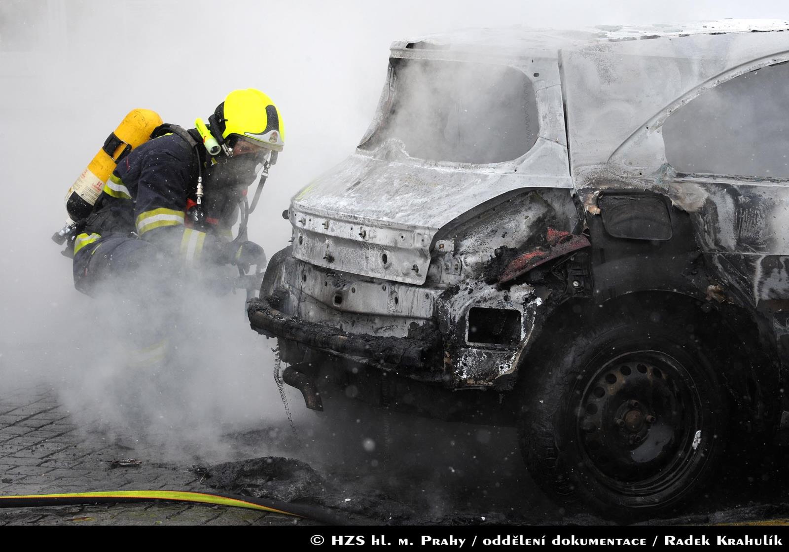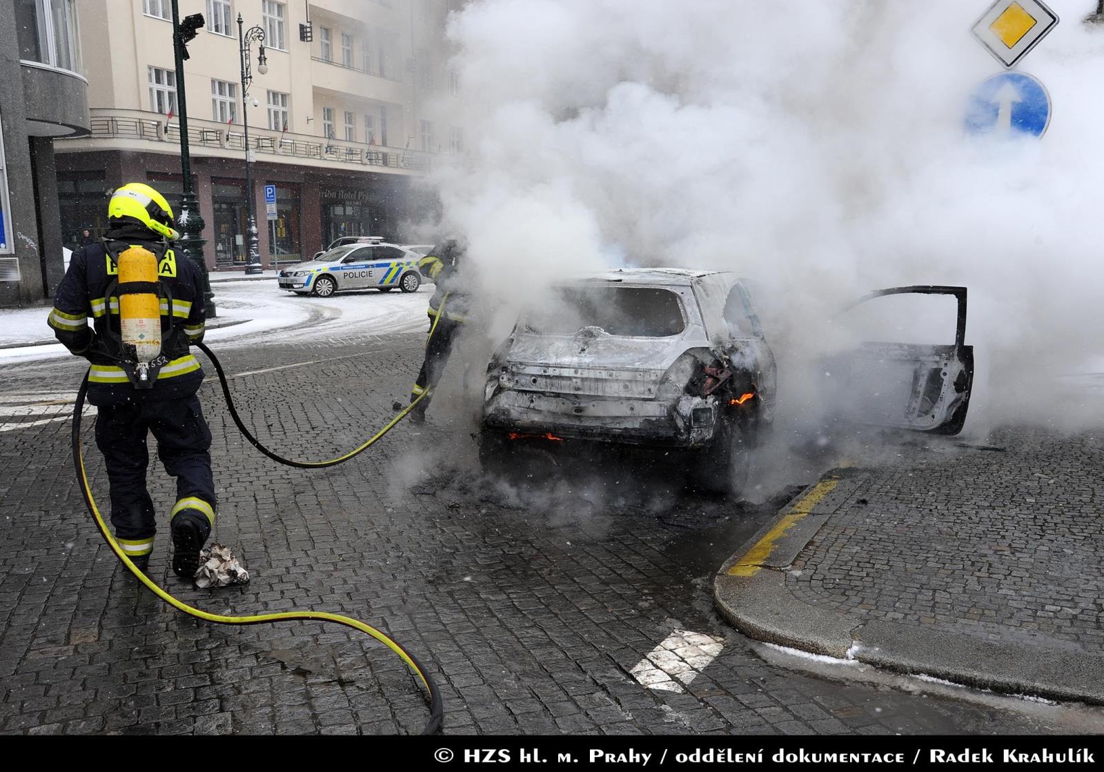 Hasiči dostali požár vozidla v centru Prahy rychle pod kontrolu