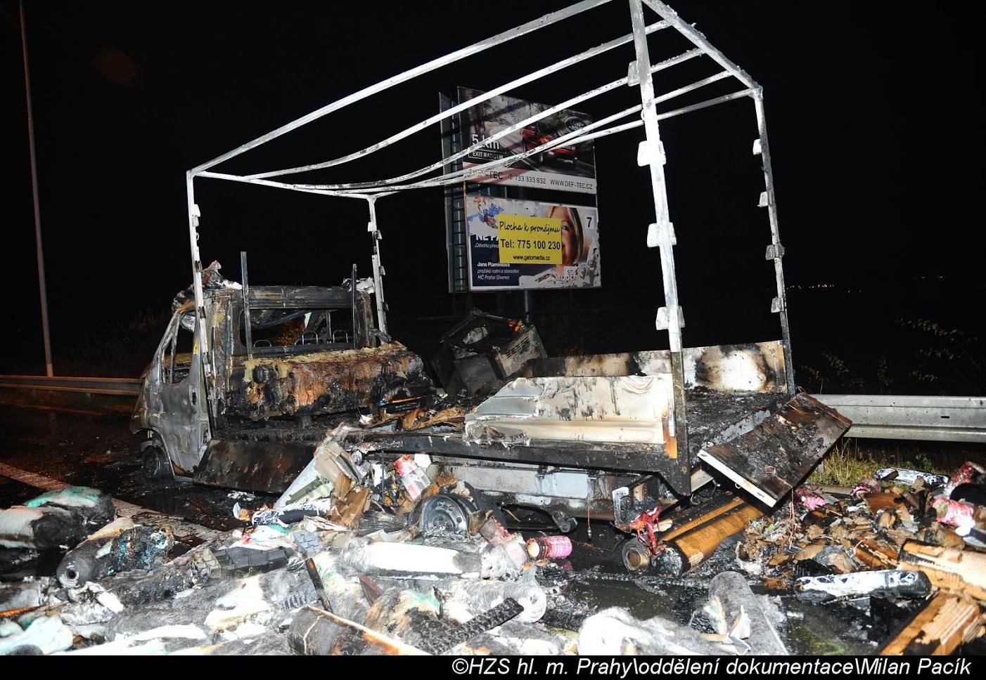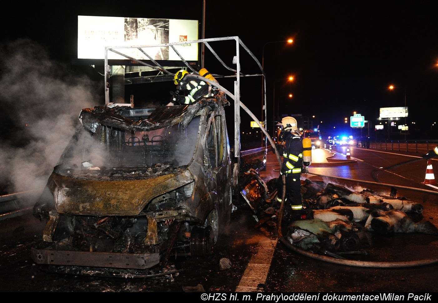Hasiči likvidovali požár dodávky na dálnici ve směru na Brno v oblasti Lochkova