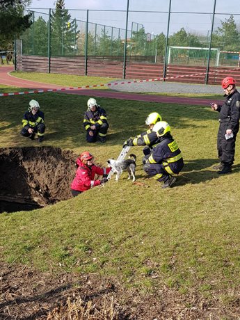 Hasiči zajistili místo propadu páskou a spolupracovali s psovody Městské policie, kteří na místo dorazili 30 minut po vyžádání, kvůli preventivnímu průzkumu krytu. Za dalších 10 minut byl první průzkum negativní. K případu byla povolána pracovnice stavebního úřadu MČ, aby posoudila stav podloží a stanovila další postup.