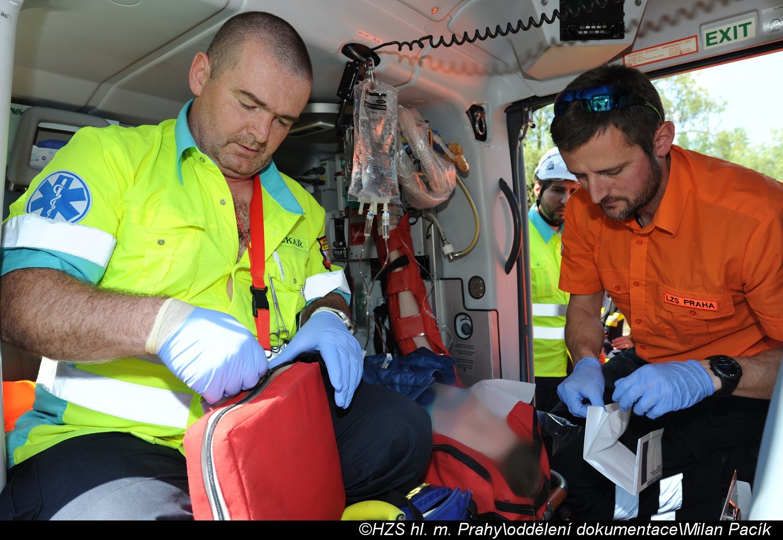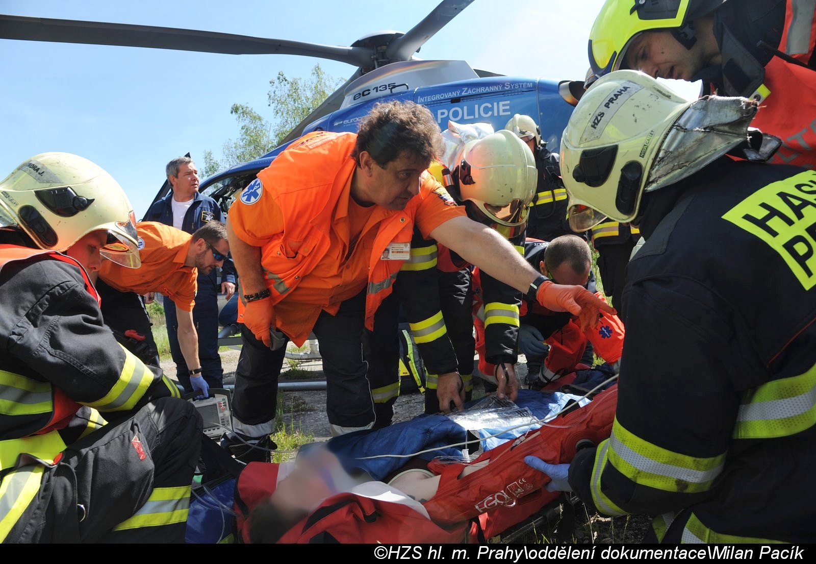 První jednotka na místo dorazila za 9 minut od ohlášení případu a okamžitě zahájila vyprošťování pomoci speciálních zvedacích vaků. Před příjezdem hasičů se několik řidičů snažilo nákladní auto nadzvednout pomocí zvedáků. Za čtyři minuty hasiči ženu vyprostili a předali ZZS hl. m. Prahy. Následně pomohli s transportem do vrtulníku LZS a zajistili místo nehody proti vzniku požáru.