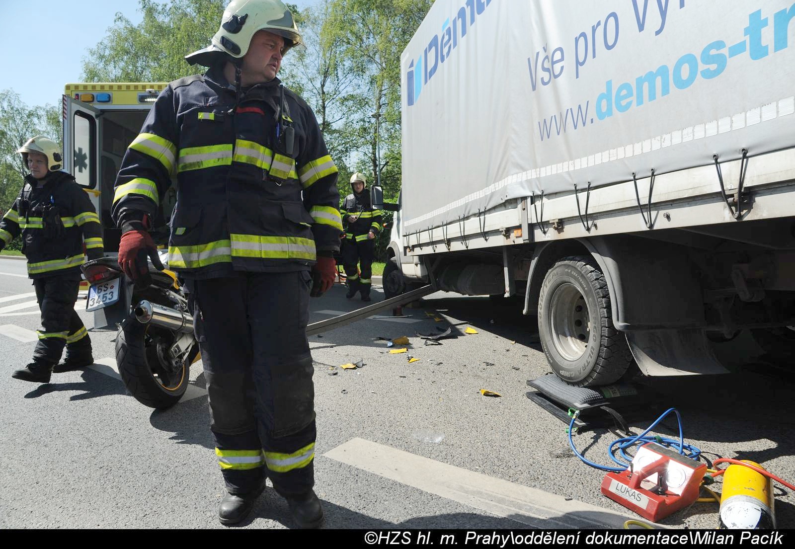V úterý 16.05.2017 zasahovaly tři jednotky pražských hasičů v Kutnohorské ulici. Motorka se tam krátce po desáté hodině střetla s nákladním vozidlem. Motorkářka byla navíc zaklíněna pod podvozkem nákladního auta.
