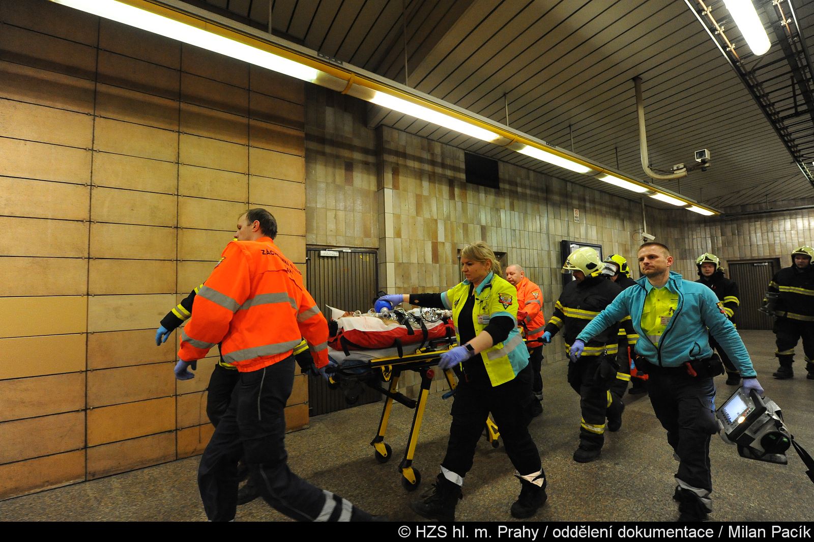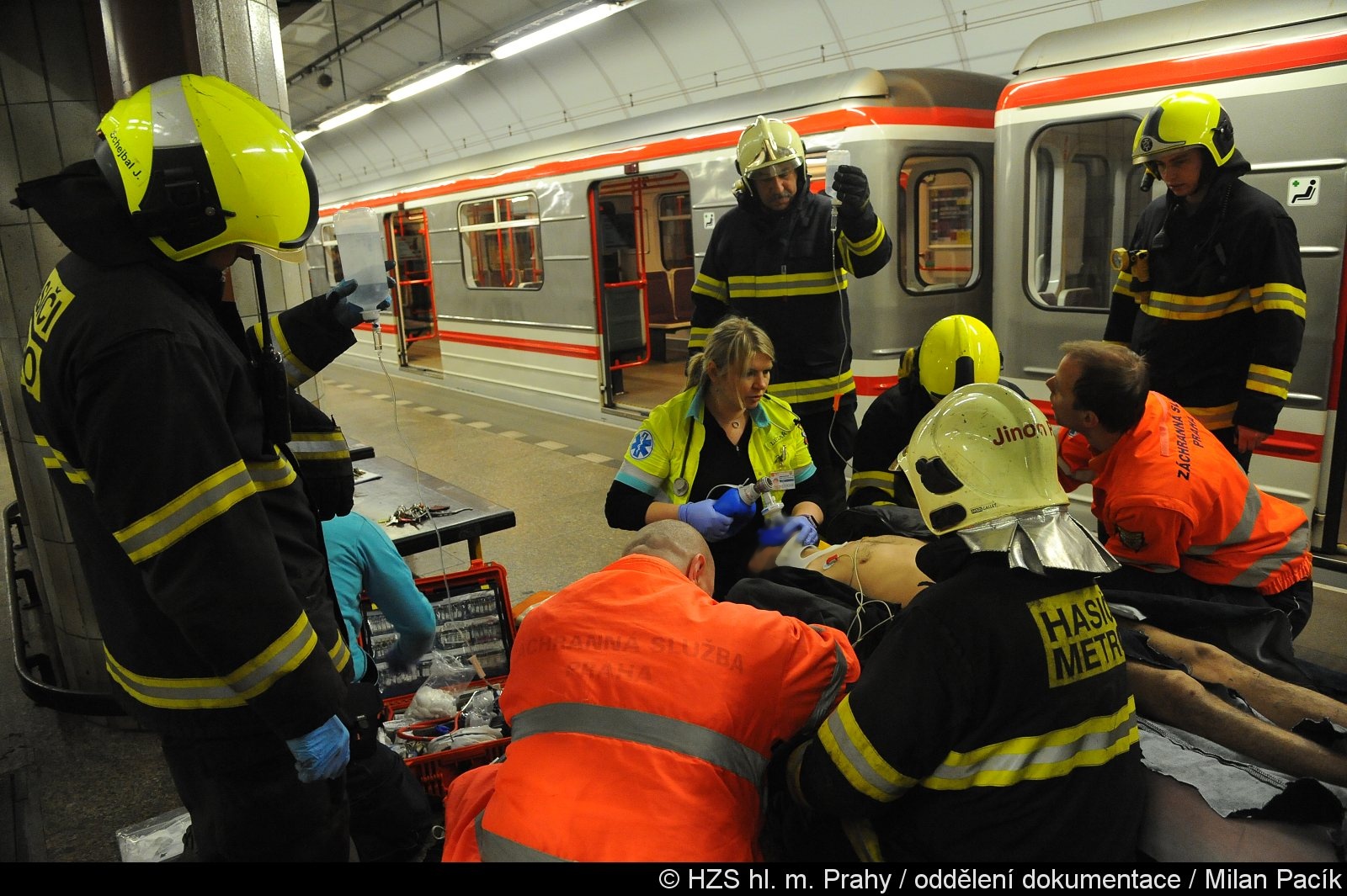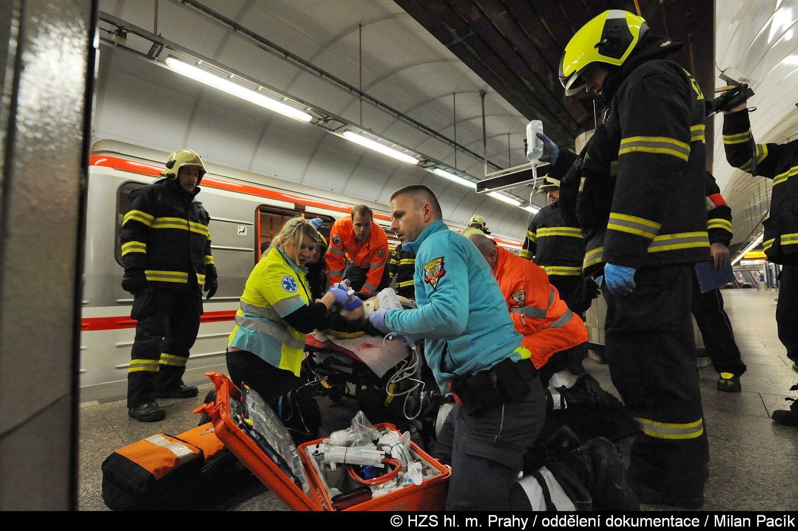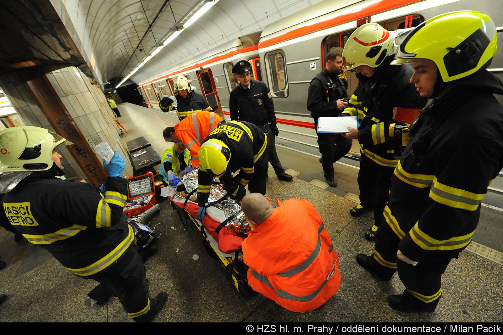 Hasiči vyprostili muže, který skočil pod soupravu metra