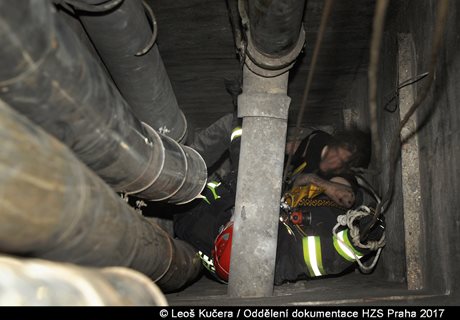V sobotu 17.06.2017 v 5:32 hodin vyprostili hasiči z centrální stanice muže, který spadl na dno světlíkové šachty pětipatrového domu v ulici Maiselova v Praze 1. Na místě jednotka spolupracovala se záchranáři ZZS hl. m. Prahy.