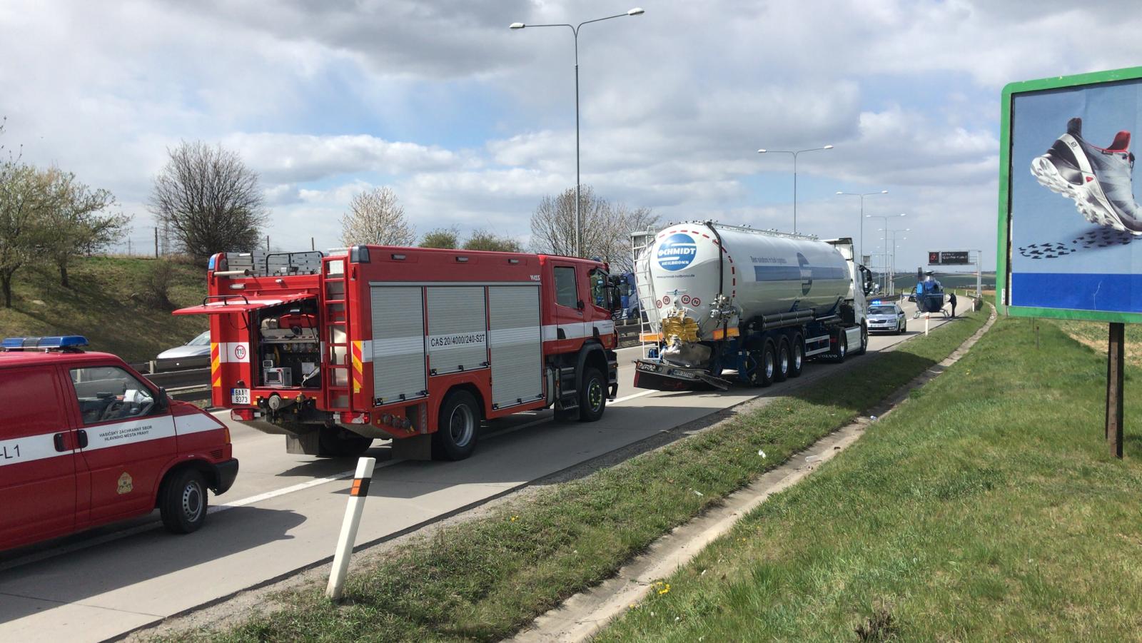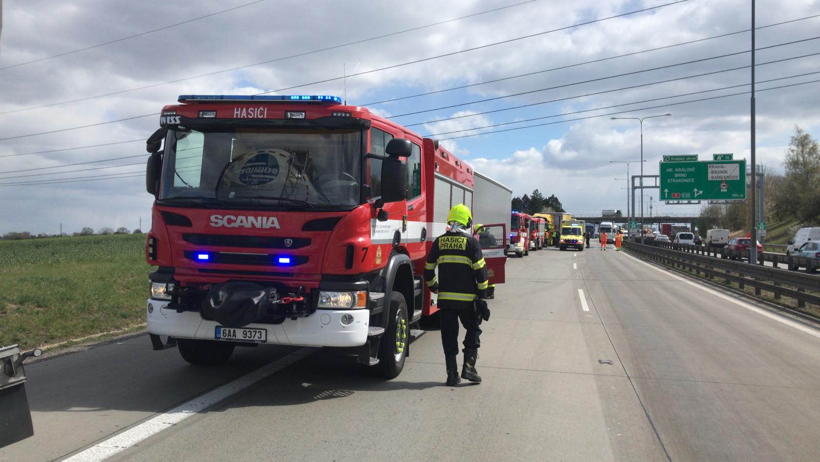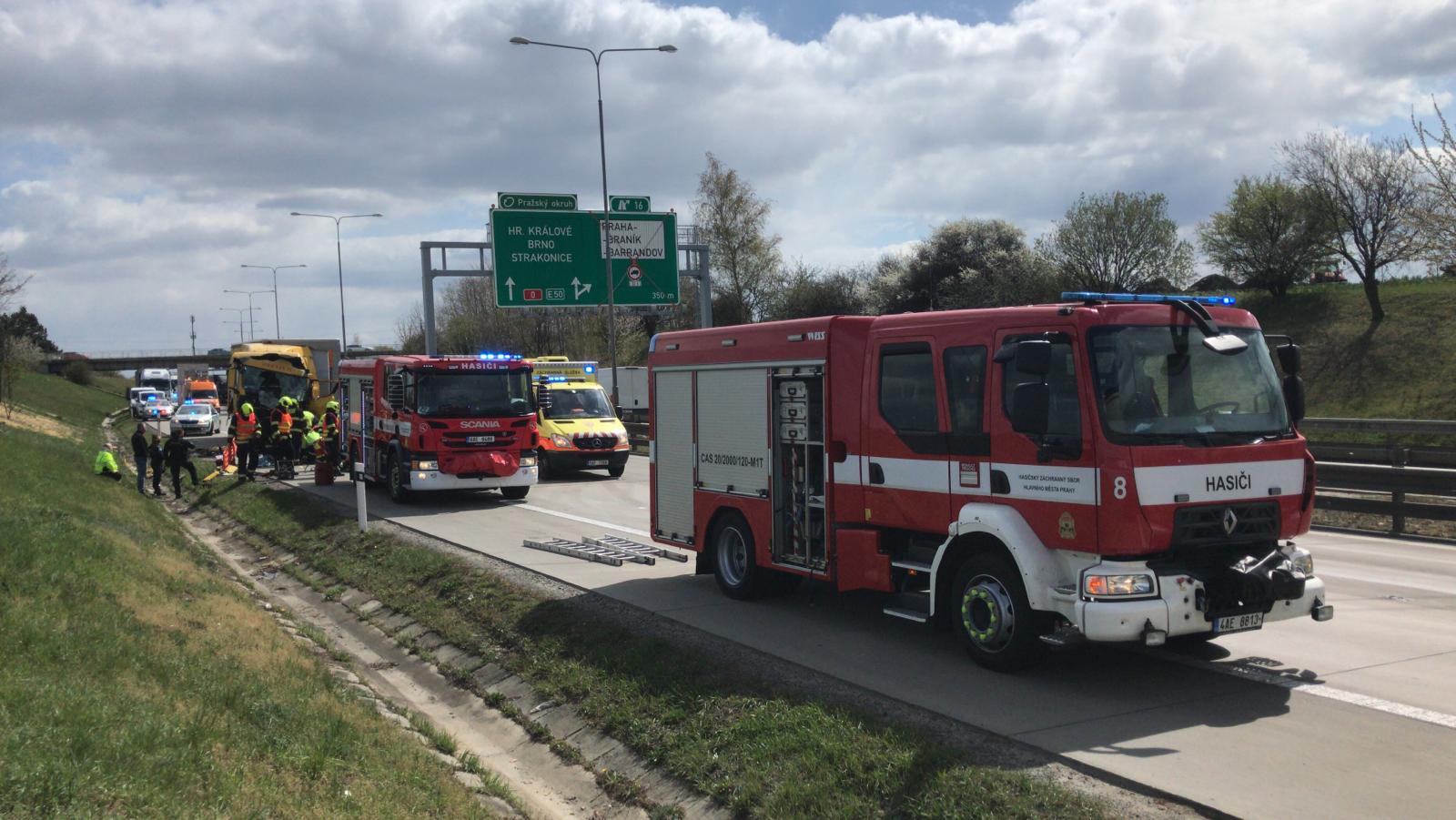 Hasiči vyprostili zraněnou osobu po nehodě dvou kamionů na Pražském okruhu