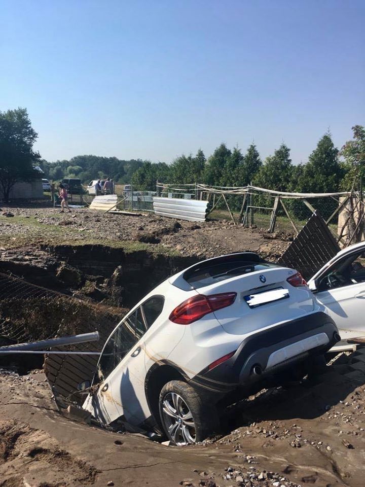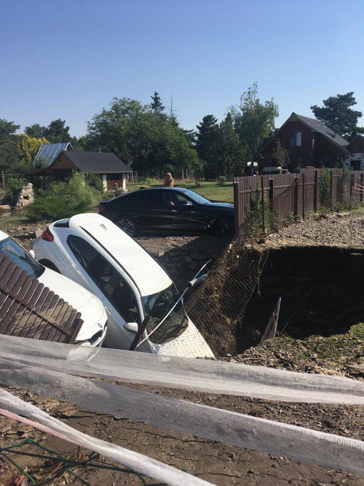 8.8.2020 - V Praze - Dolních Počernicích v ulici Madarova se propadla vozidla do jámy.