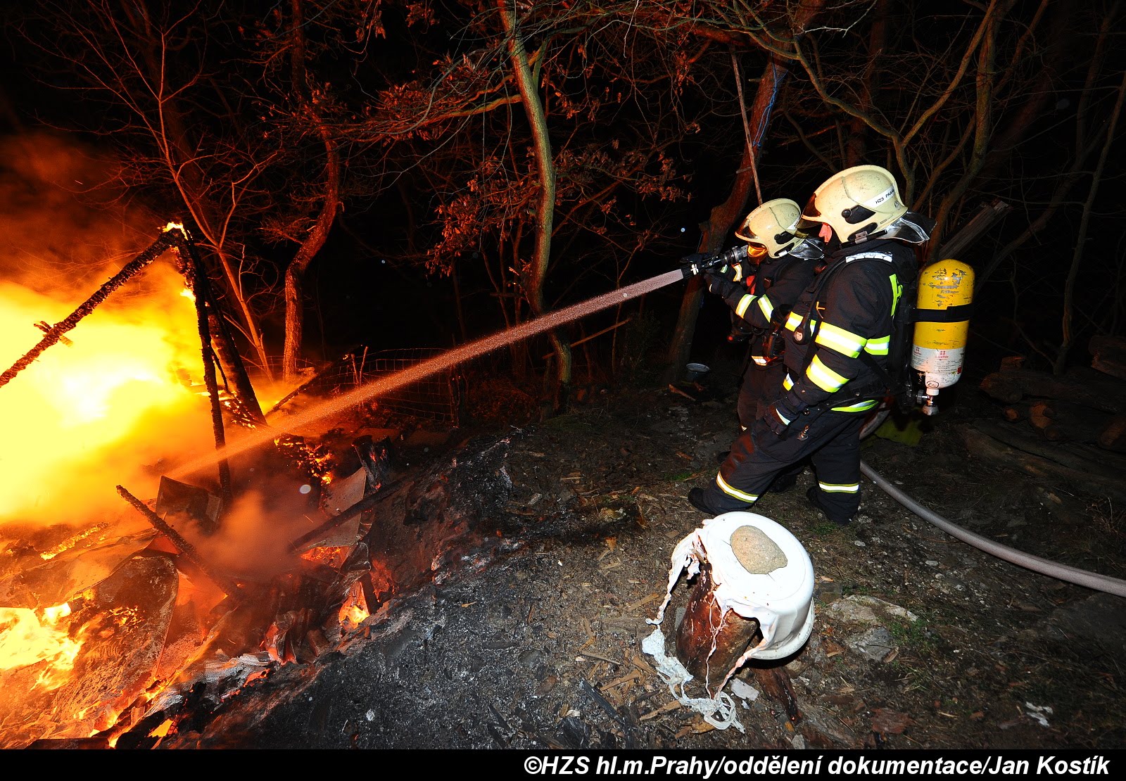Dne 30.01.2018 od 00:34 hodin zasahovali hasiči z holešovické, strašnické a petřinské stanice u požáru chaty v ulici K mlýnu. Na likvidaci požáru hasiči nasadili 2 C proudy a zasahovali v dýchací technice. Hořelo na ploše 4x5 metrů, z objektu byla vynesena propan-butanová lahev, kterou hasiči museli ochlazovat.