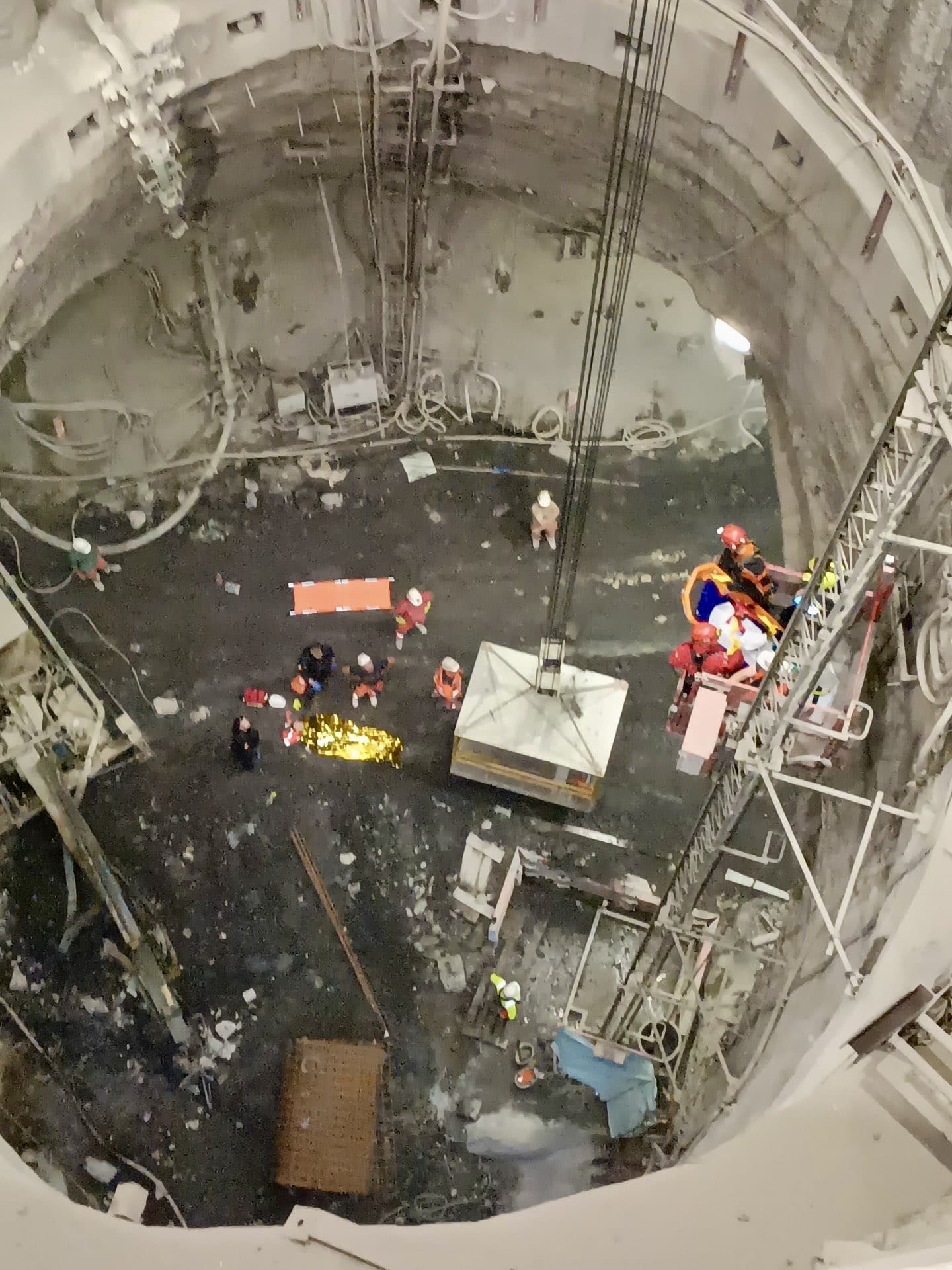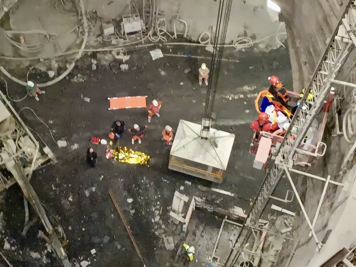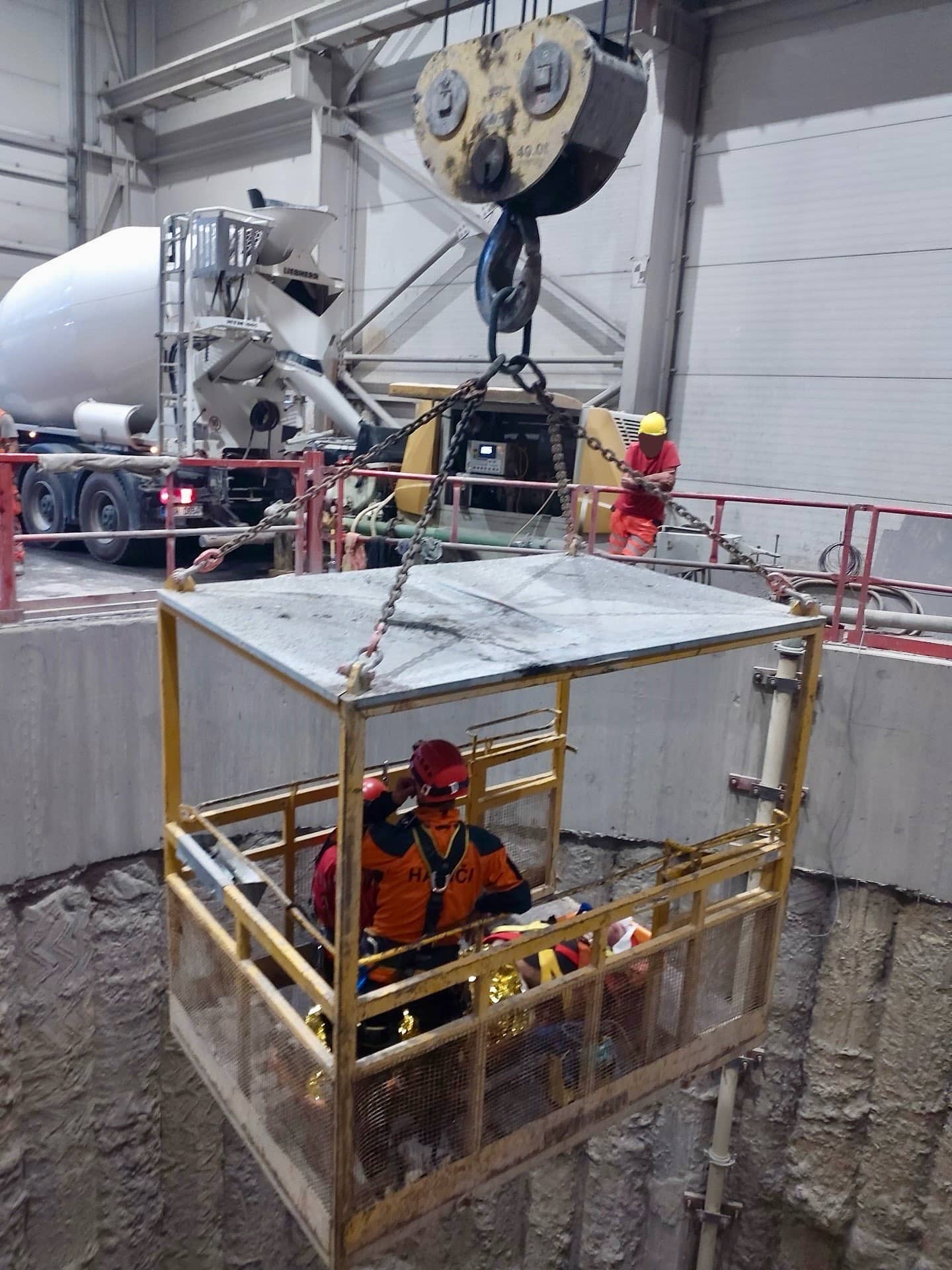 Hasiči a záchranáři společně transportovali zraněného dělníka na povrch a zajistili jeho bezpečné předání do rukou zdravotnické služby.