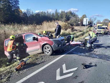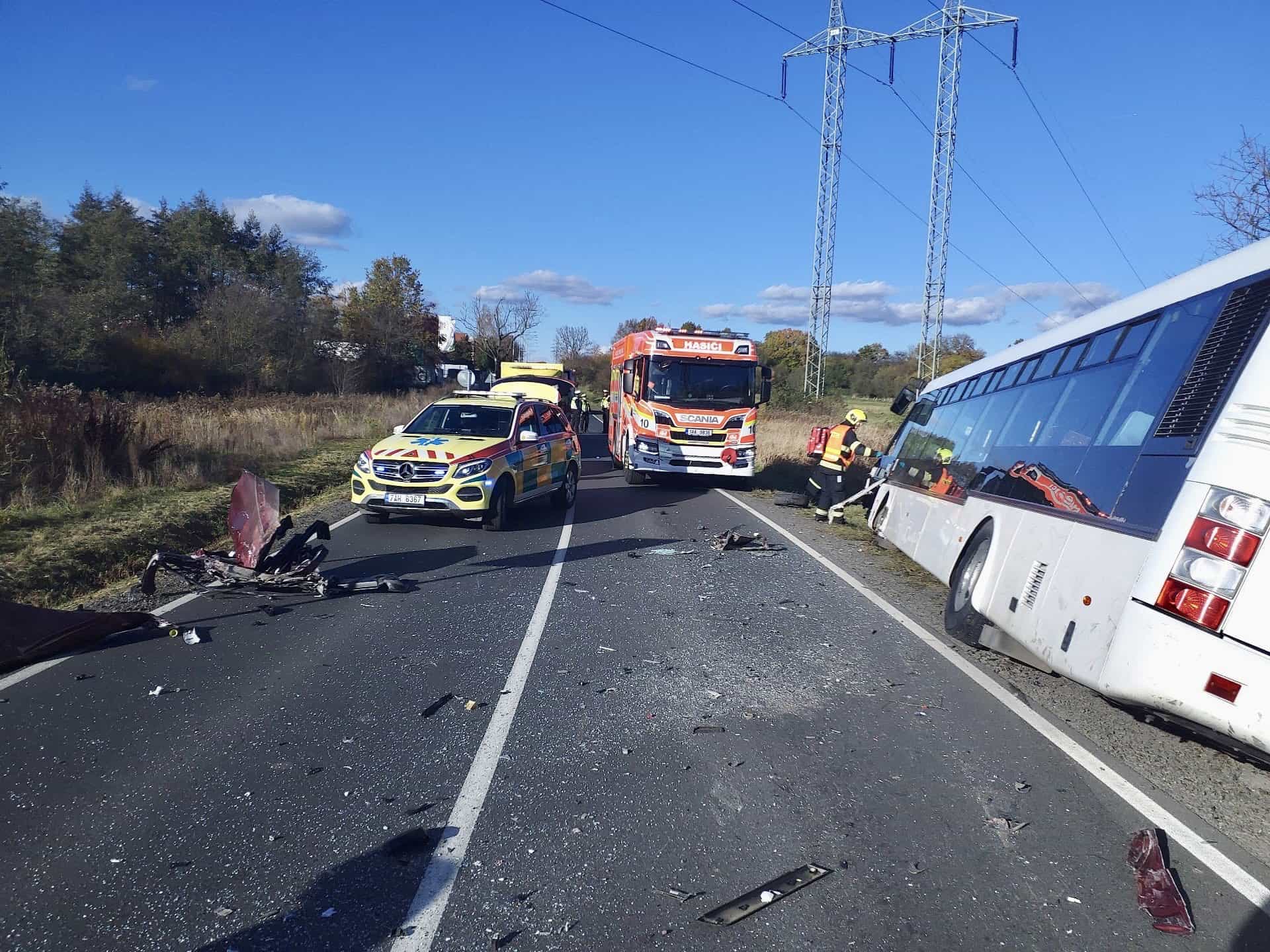 Hasiči zasahovali při kolizi autobusu a auta, dva lidé zraněni