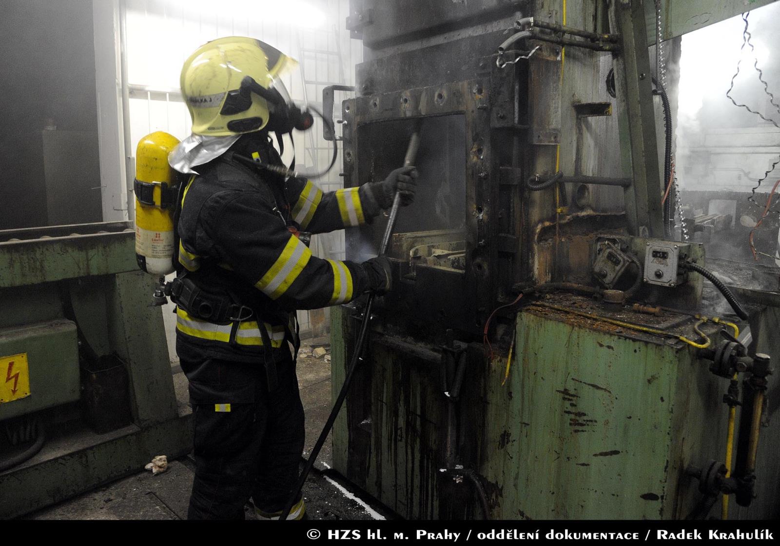 Hasiči zasahovali u požáru oleje kalící technologie v pražské Hostivaři