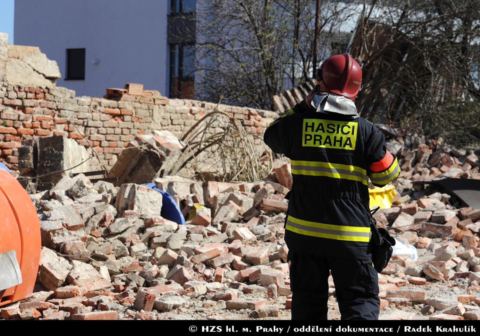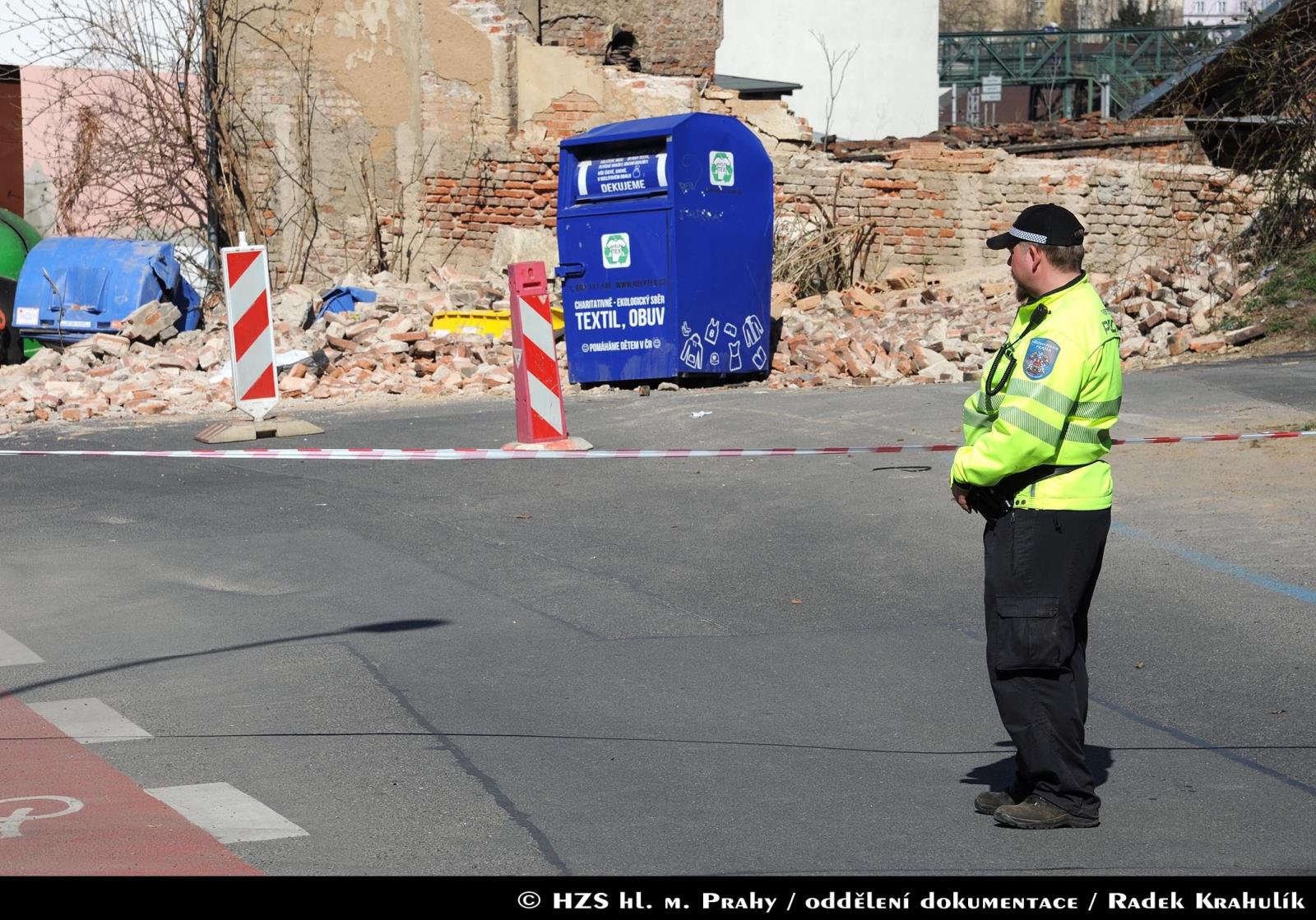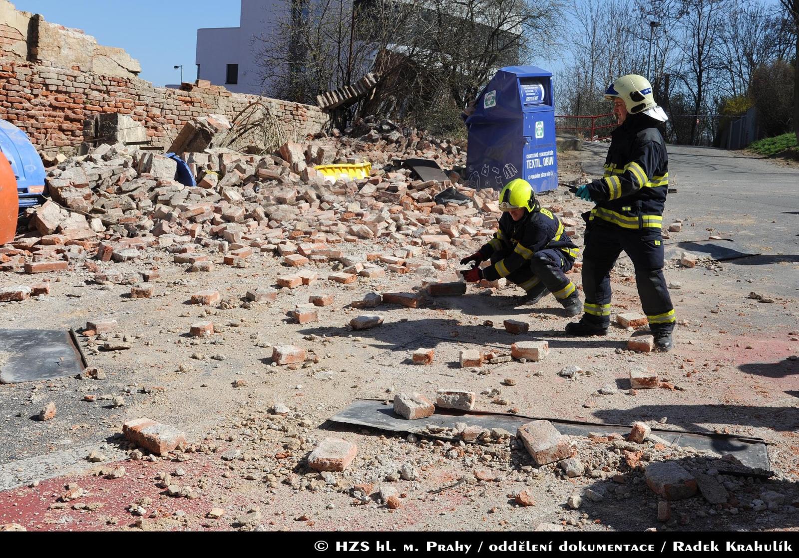 Hasiči povolali psovody Městské policie, aby prohledali sutiny, zda se pod nimi nenachází další osoby. Místo pádu zdi bylo zajištěno páskou. Na místě hasiči spolupracovali i s policejním pyrotechnikem a statikem.