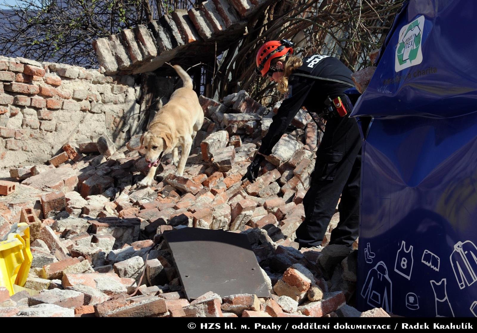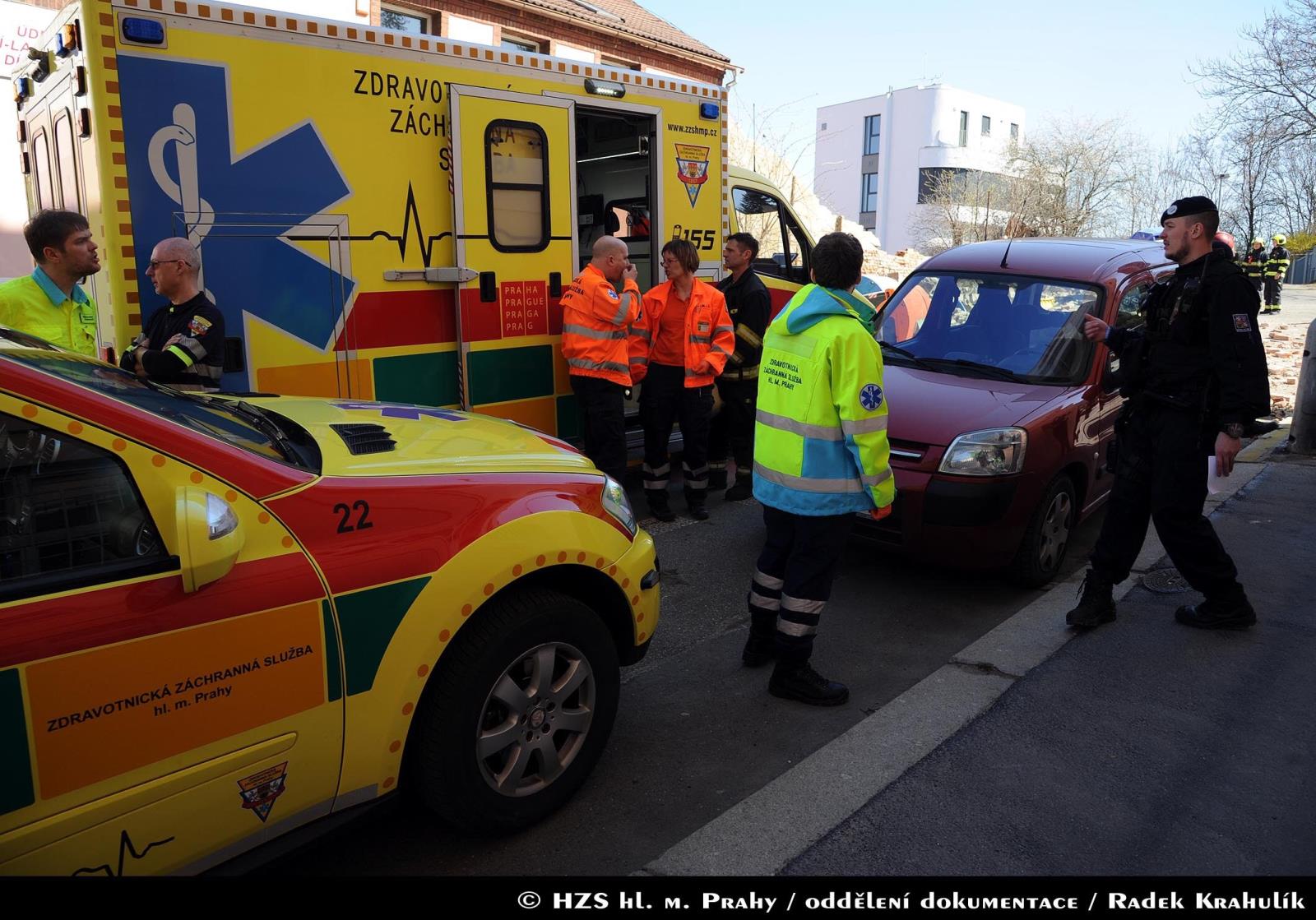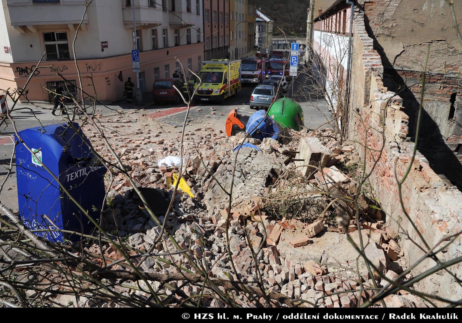 Hasiči povolali psovody Městské policie, aby prohledali sutiny, zda se pod nimi nenachází další osoby. Místo pádu zdi bylo zajištěno páskou. Na místě hasiči spolupracovali i s policejním pyrotechnikem a statikem.