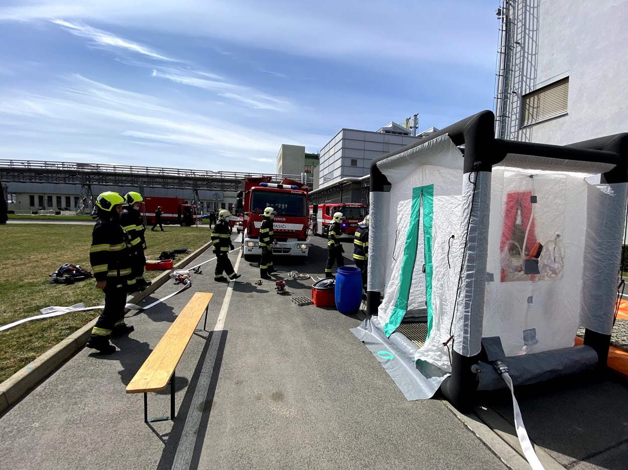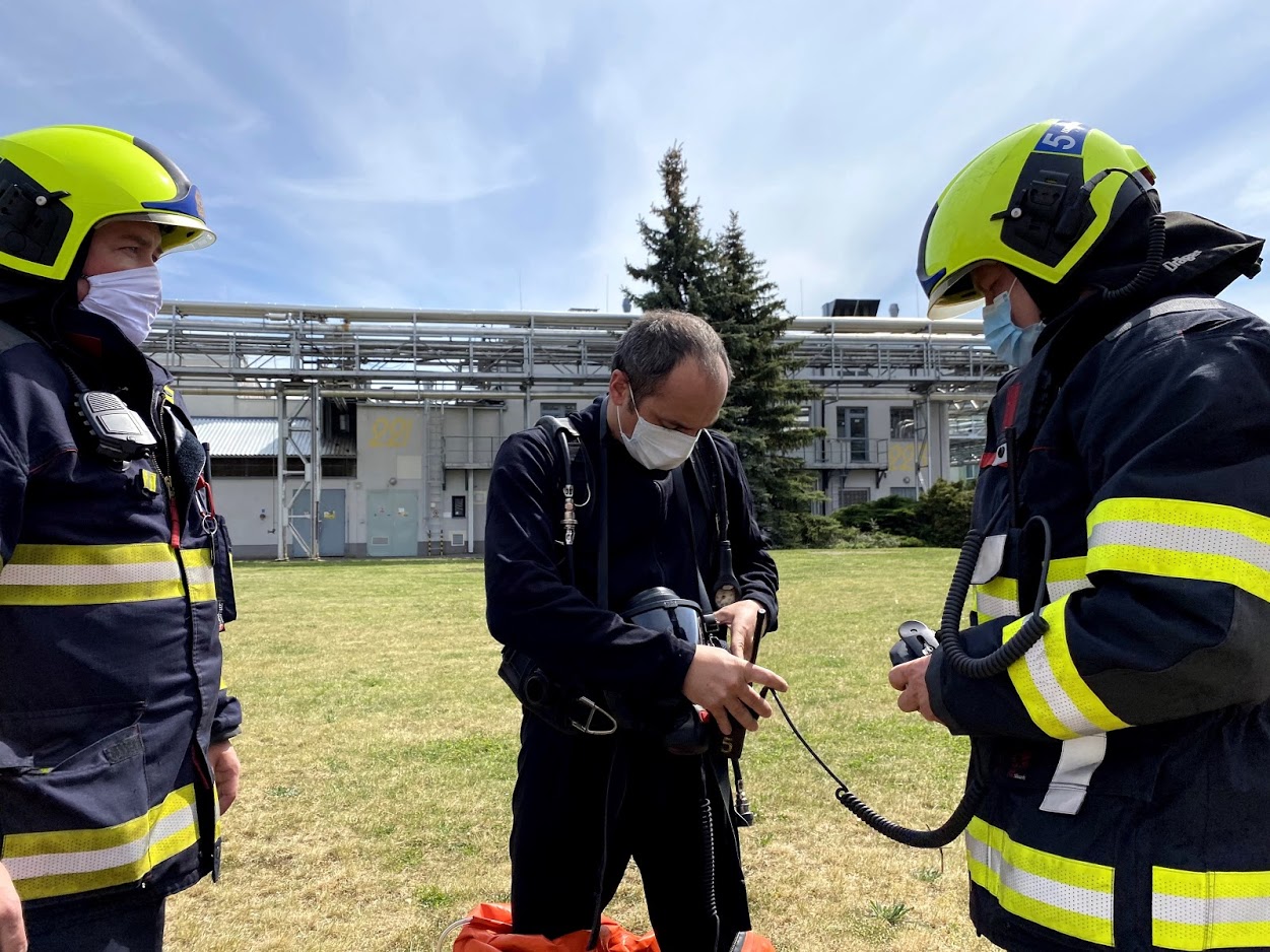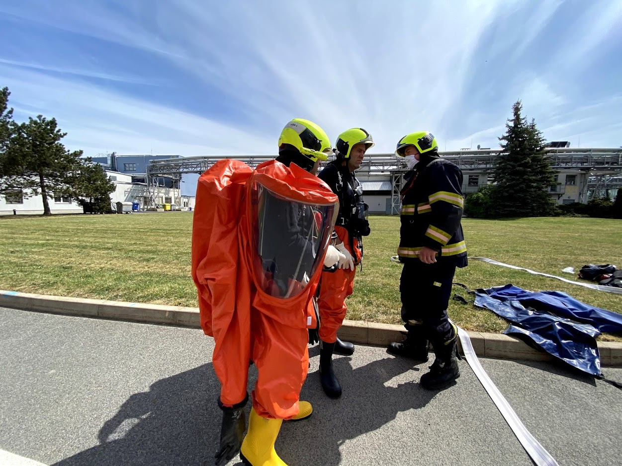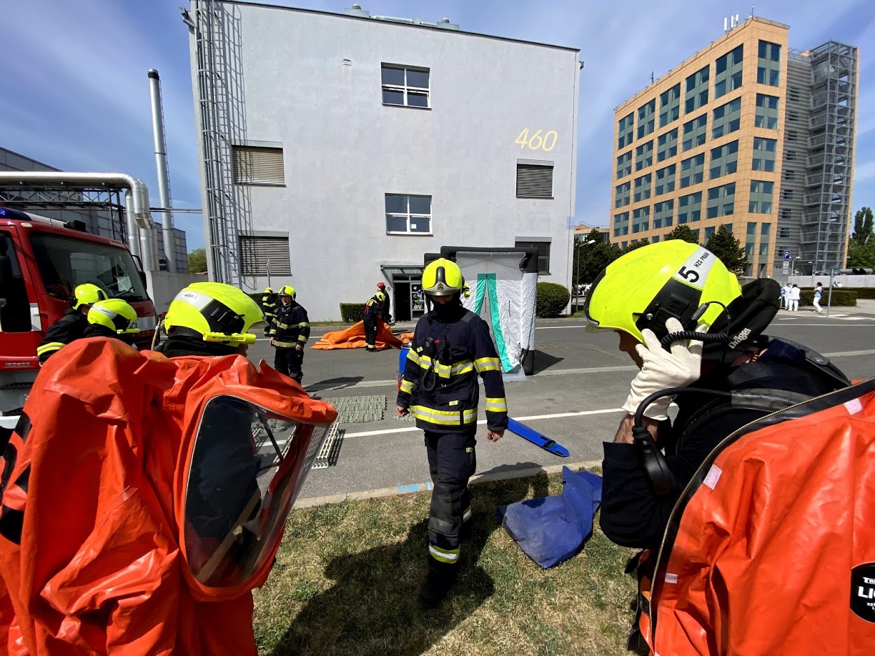 Video zde: Hasiči zlikvidovali chemickou látku, která unikla do podzemí průmyslového areálu v Praze 15