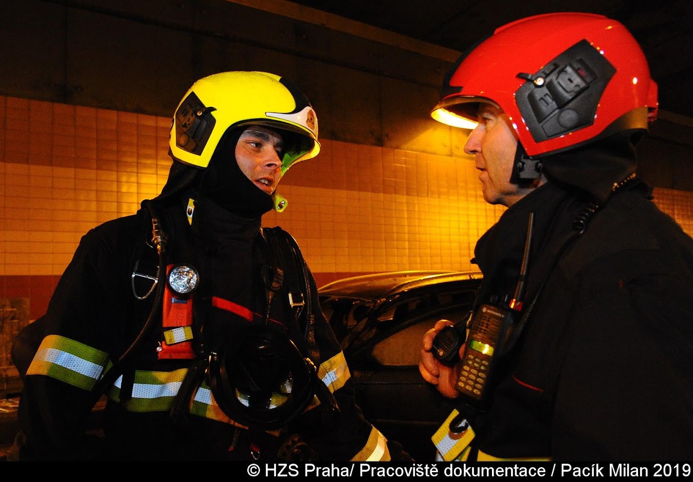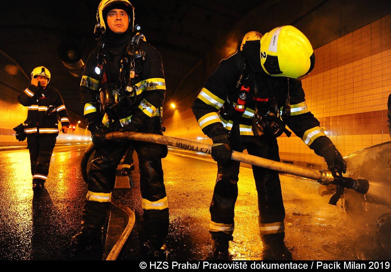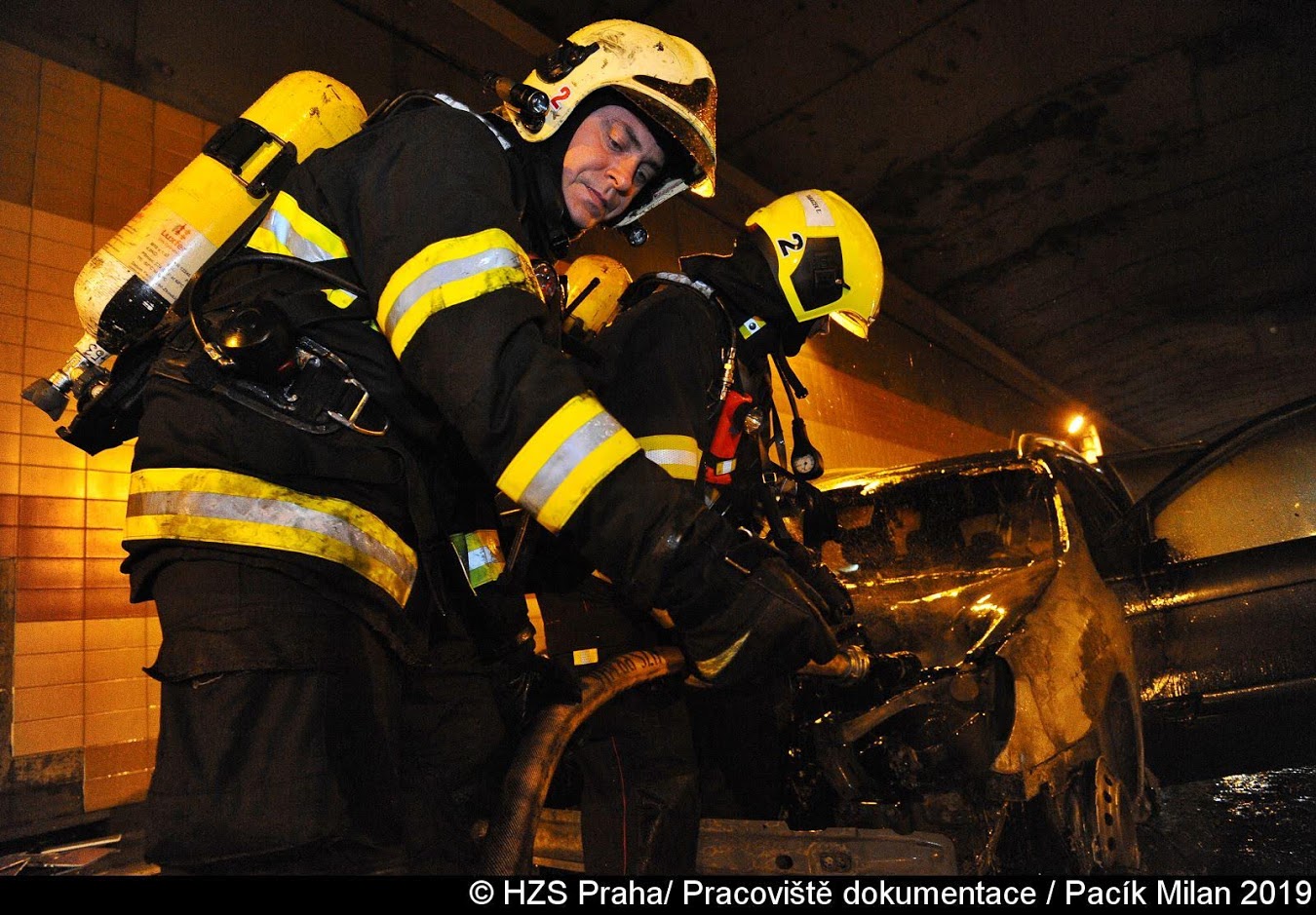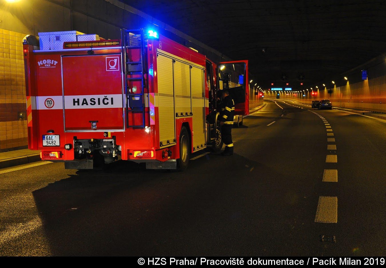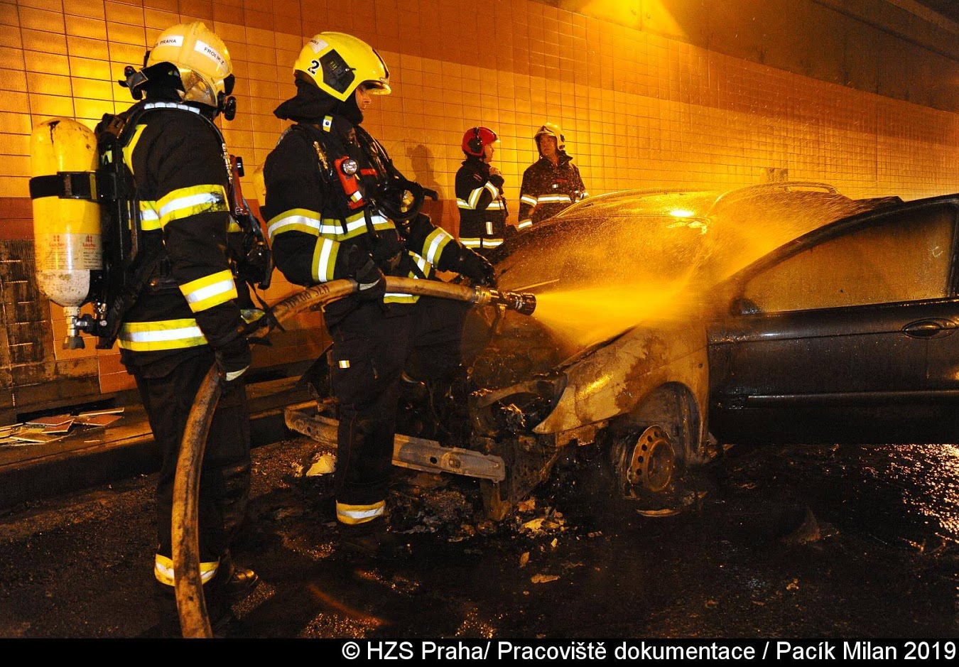 K hořícímu autu v Dejvickém tunelu vyjely dvě jednotky hasičů