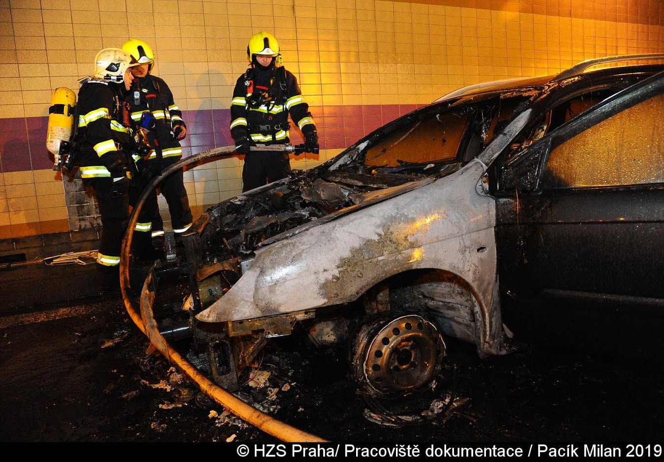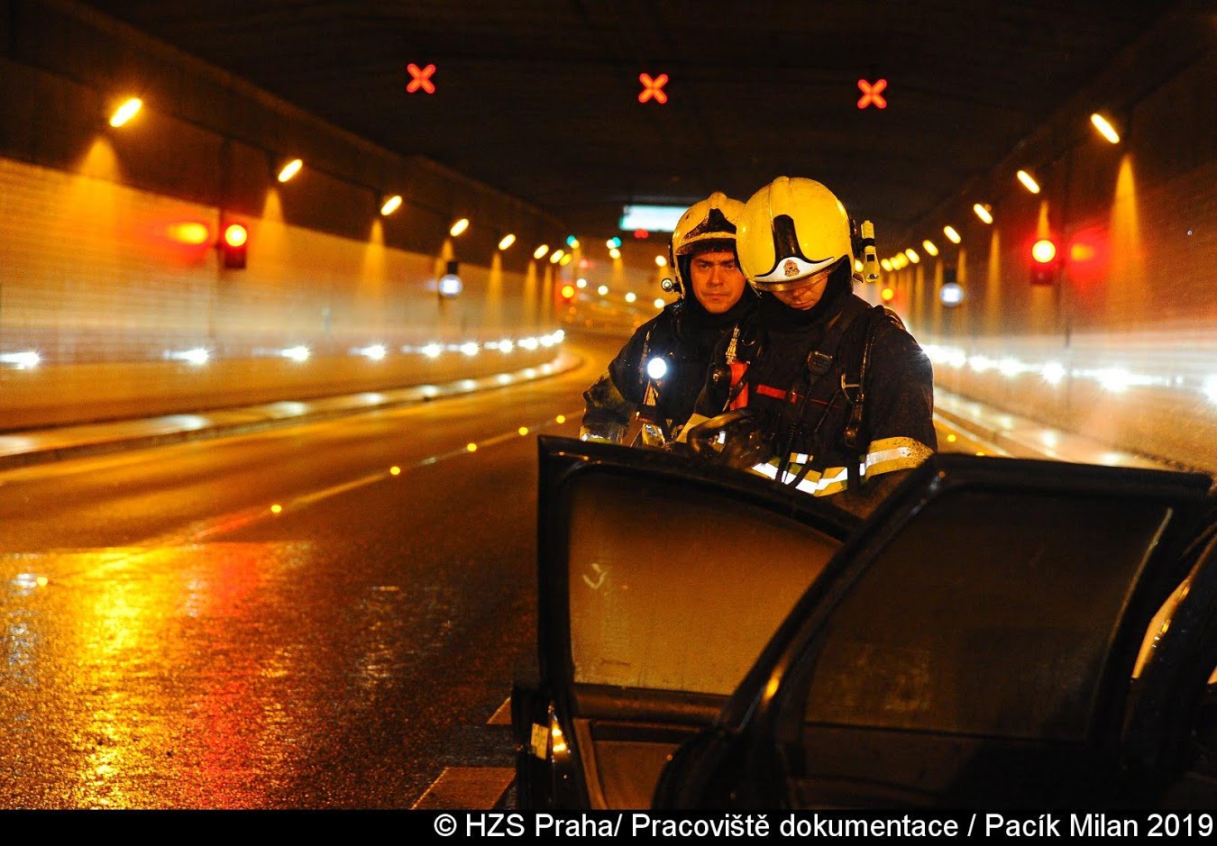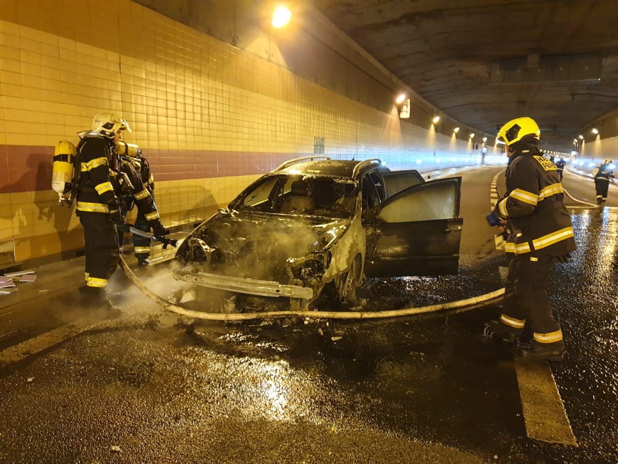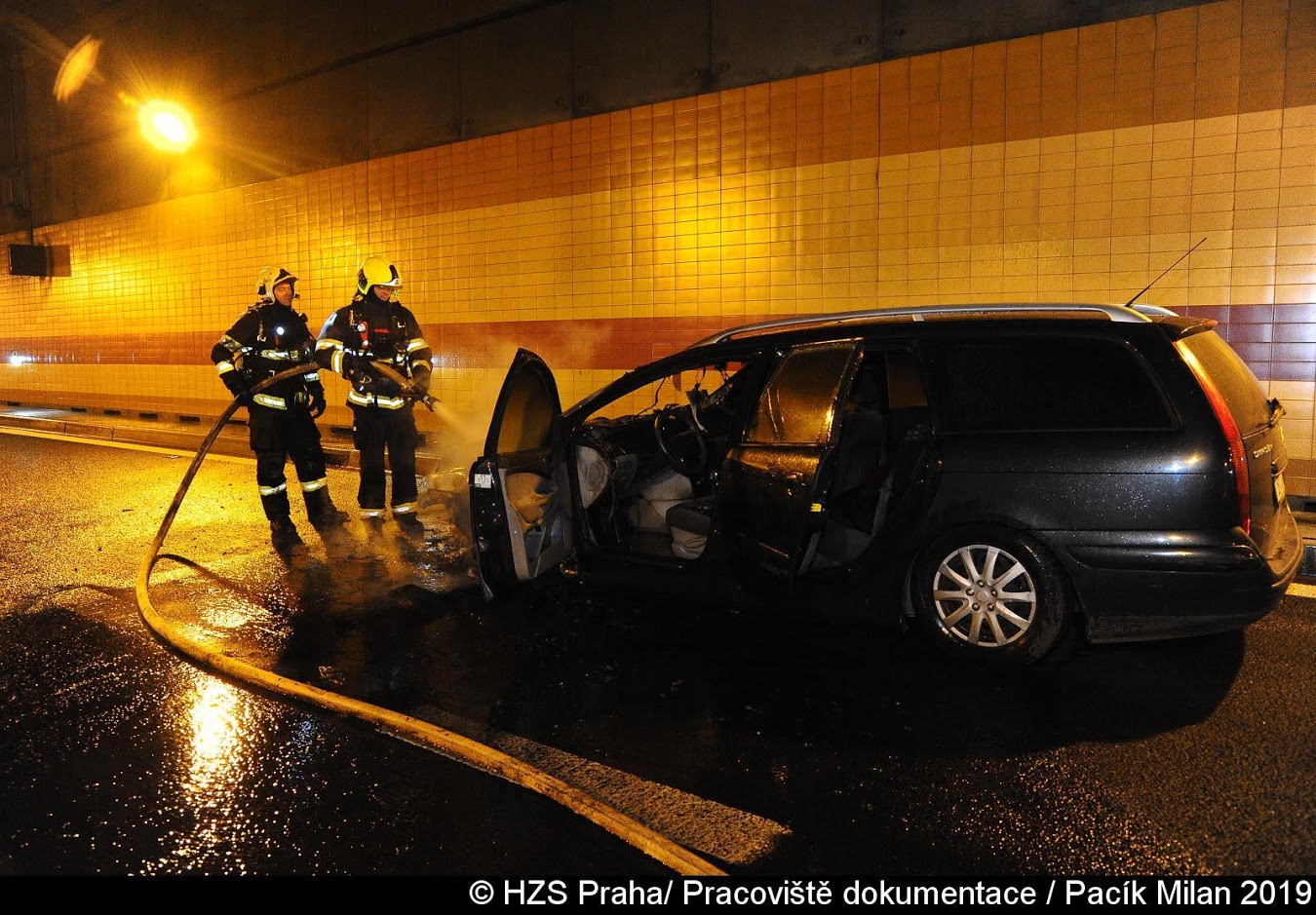 Dvě jednotky pražských hasičů zasahovaly od 17:12 hodin v troubě A Dejvického tunelu směrem k Barrandovu u požáru osobního auta v plném rozsahu. Na likvidaci plamenů byl nasazen jeden proud vody, hasiči zasahovali v dýchací technice. Pod kontrolu dostali požár v 17:17 hodin.