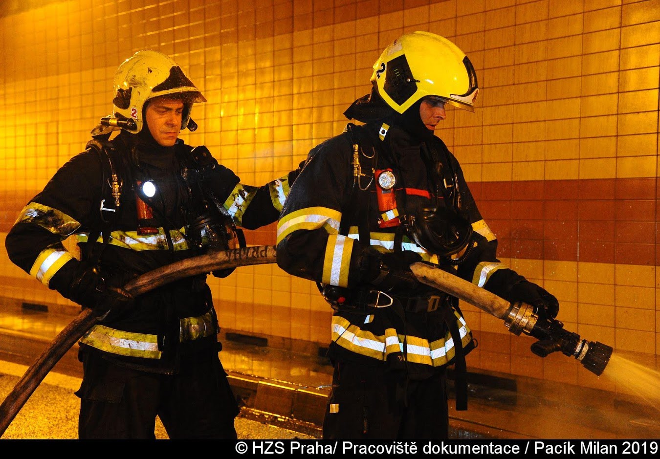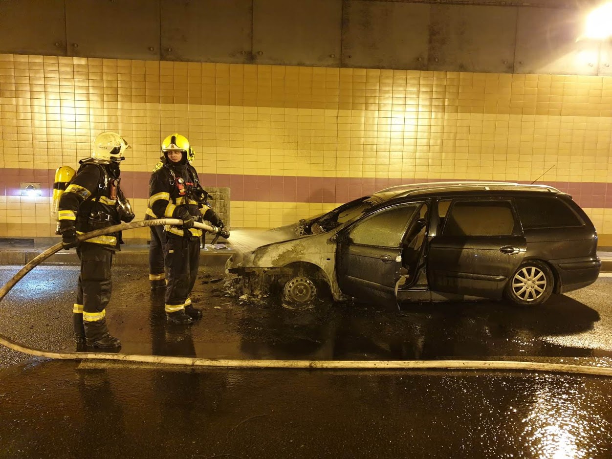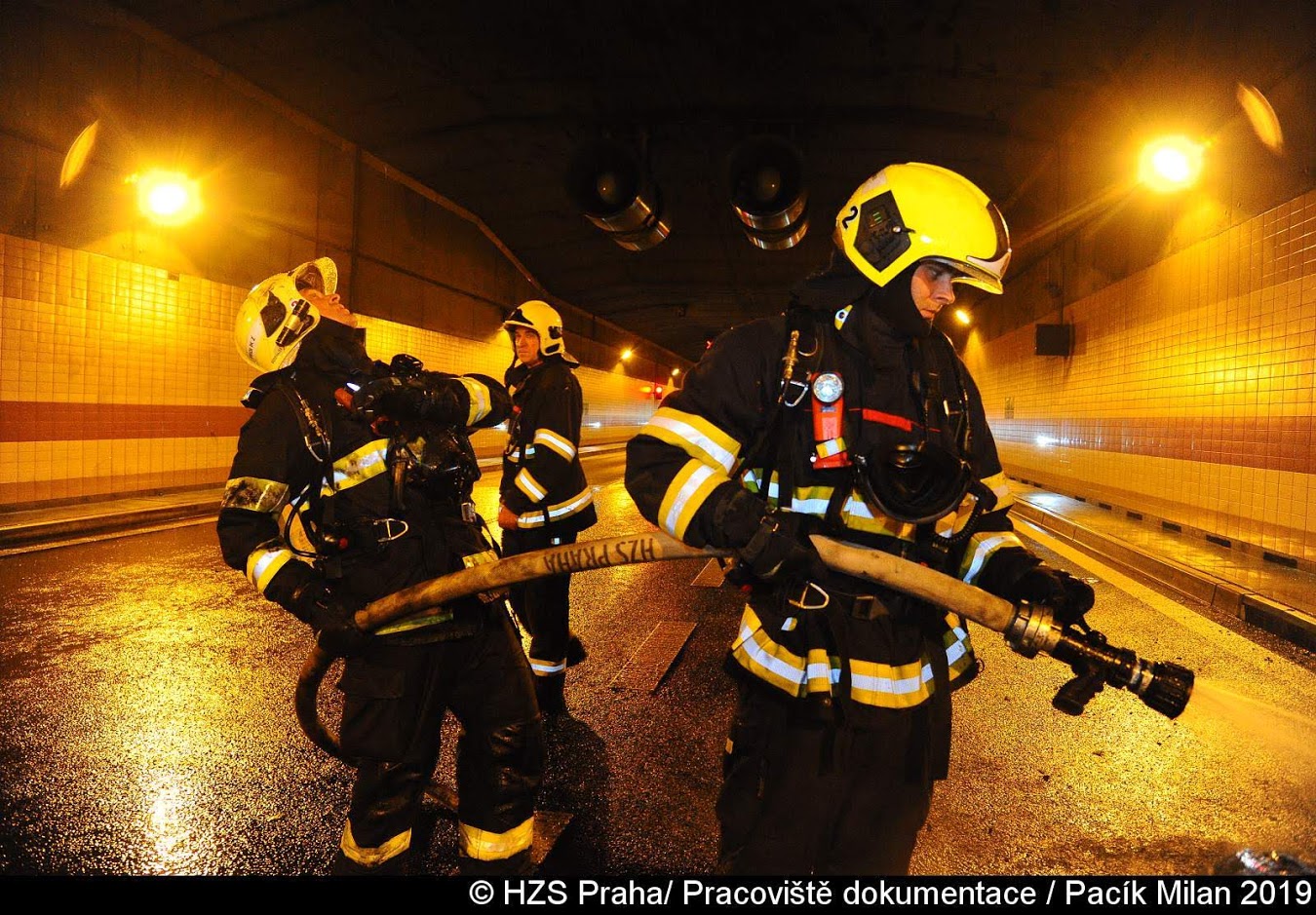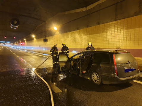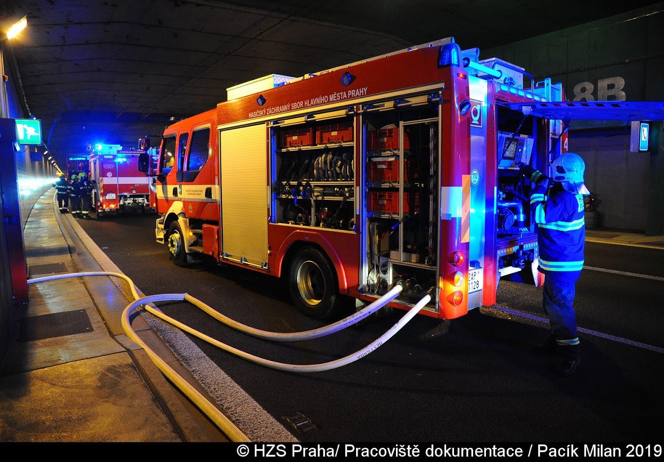 Dvě jednotky pražských hasičů zasahovaly od 17:12 hodin v troubě A Dejvického tunelu směrem k Barrandovu u požáru osobního auta v plném rozsahu. Na likvidaci plamenů byl nasazen jeden proud vody, hasiči zasahovali v dýchací technice. Pod kontrolu dostali požár v 17:17 hodin.