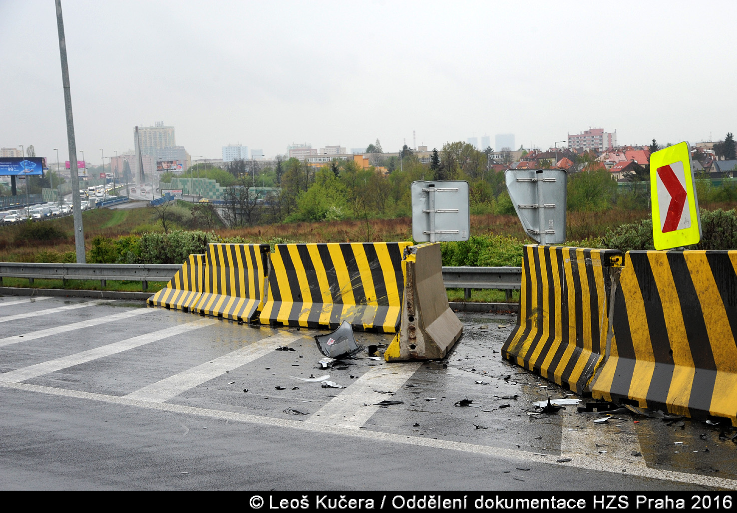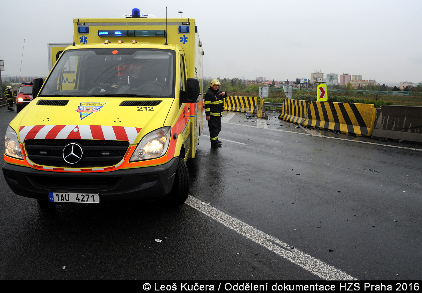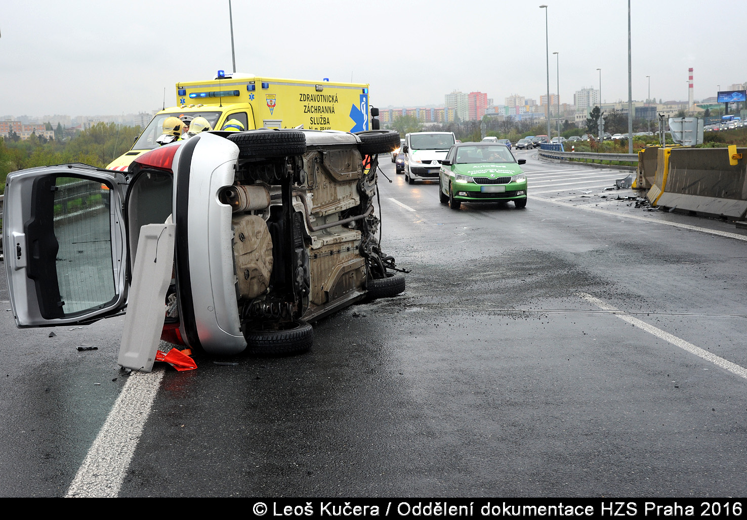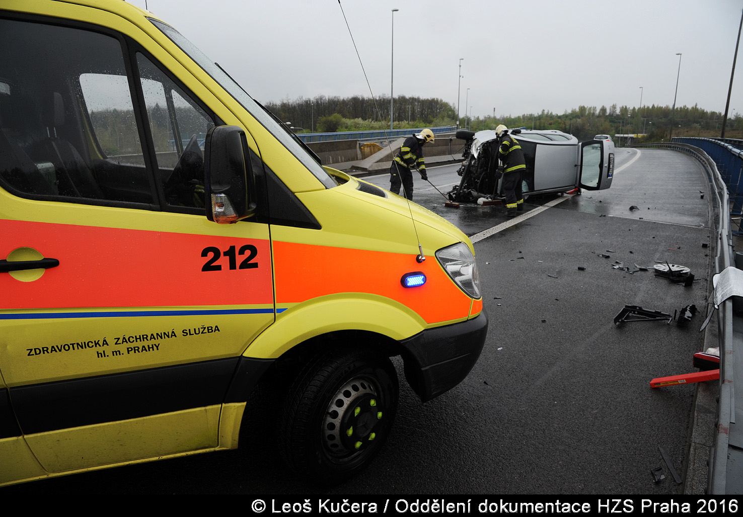 V pondělí 17. dubna 2017 v 16:59 hodin zasahovali hasiči z krčské stanice na Jižní spojce u Lanového mostu. Převrátilo se tam osobní vozidlo ve směru do Štěrbohol.