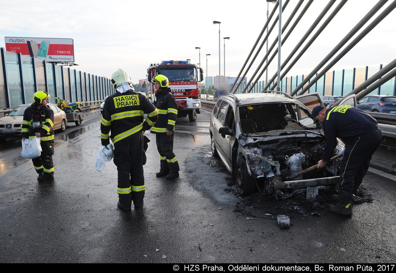 Požár osobního automobilu na Jižní spojce v oblasti lanového mostu likvidovala dne 23.06.2017 v 19:24 hodin jednotka ze Strašnic. Hasiči na likvidaci požáru použili dýchací techniku a vysokotlakou vodu. Událost zablokovala všechny tři jízdní pruhy ve směru na Černý Most. Požárem, který způsobila technická závada, vznikla škoda 100.000 korun.