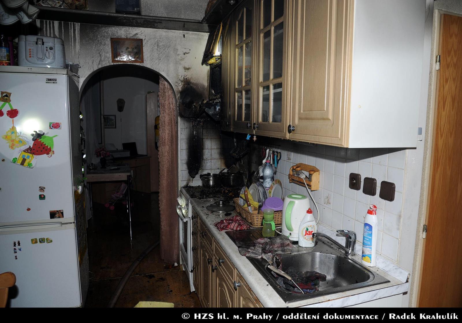 Na pražském sídlišti Barrandov hořelo vybavení kuchyně bytu, požár způsobila nedbalost