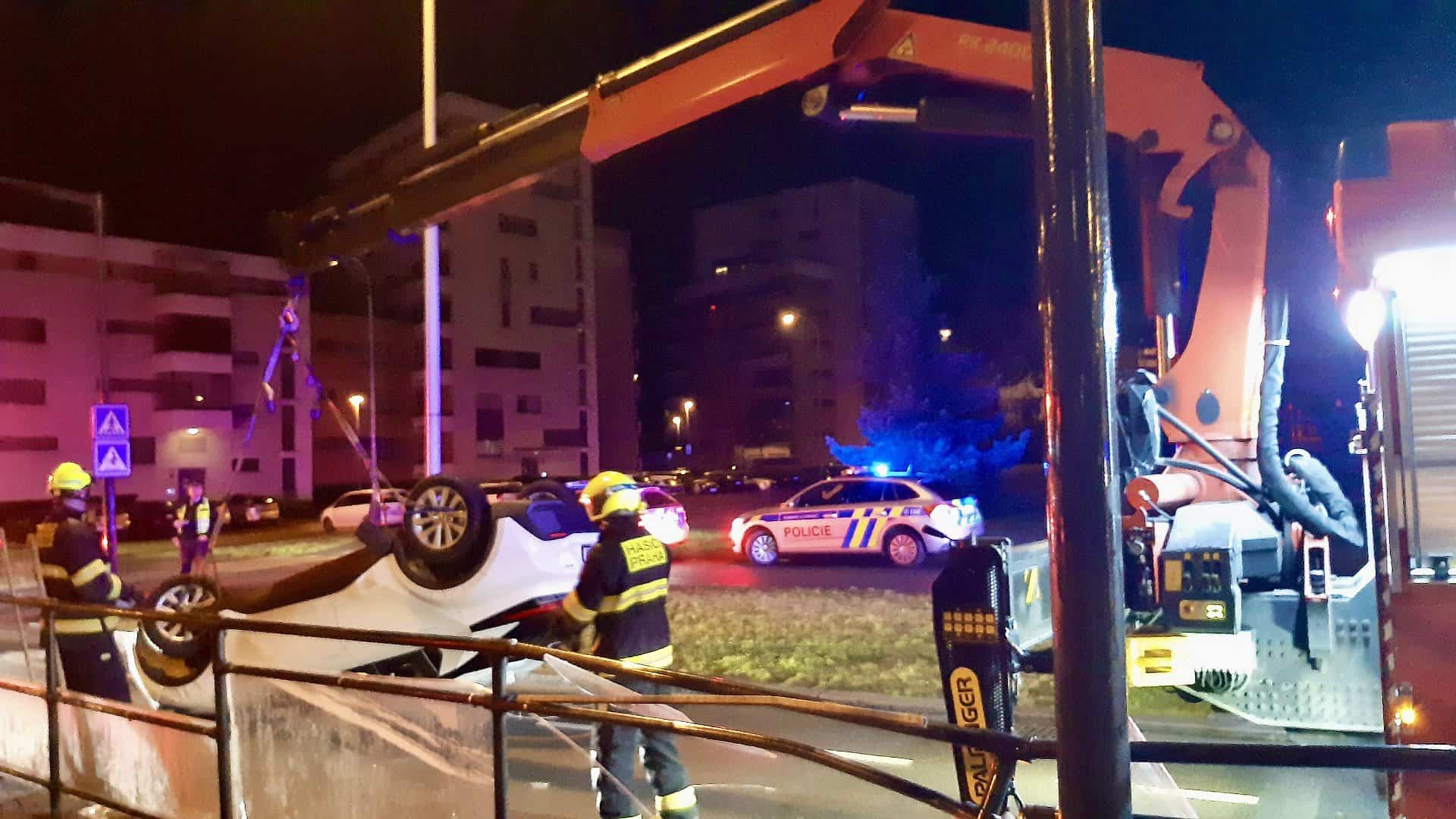 Nehoda osobního vozu skončila převrácením a zásahem záchranářů