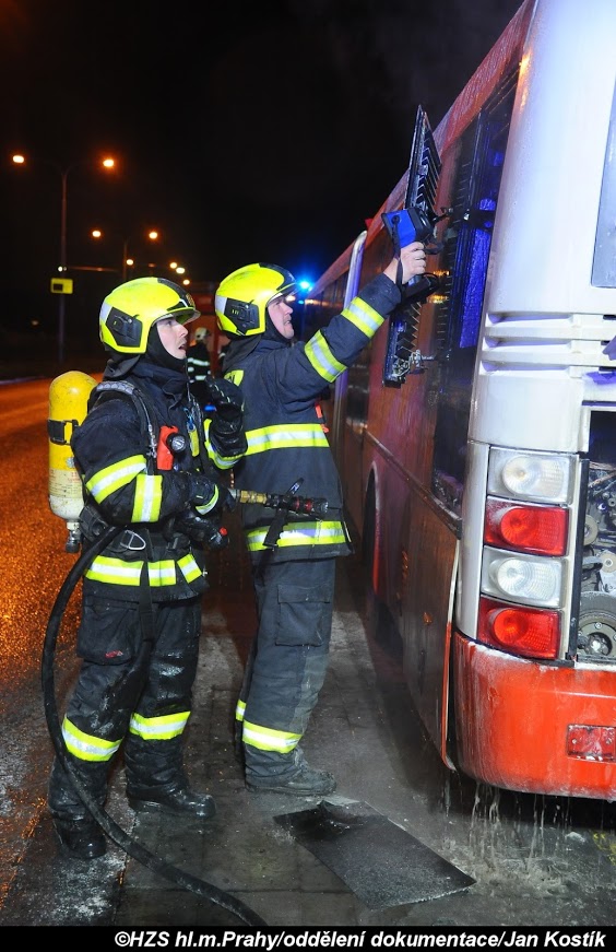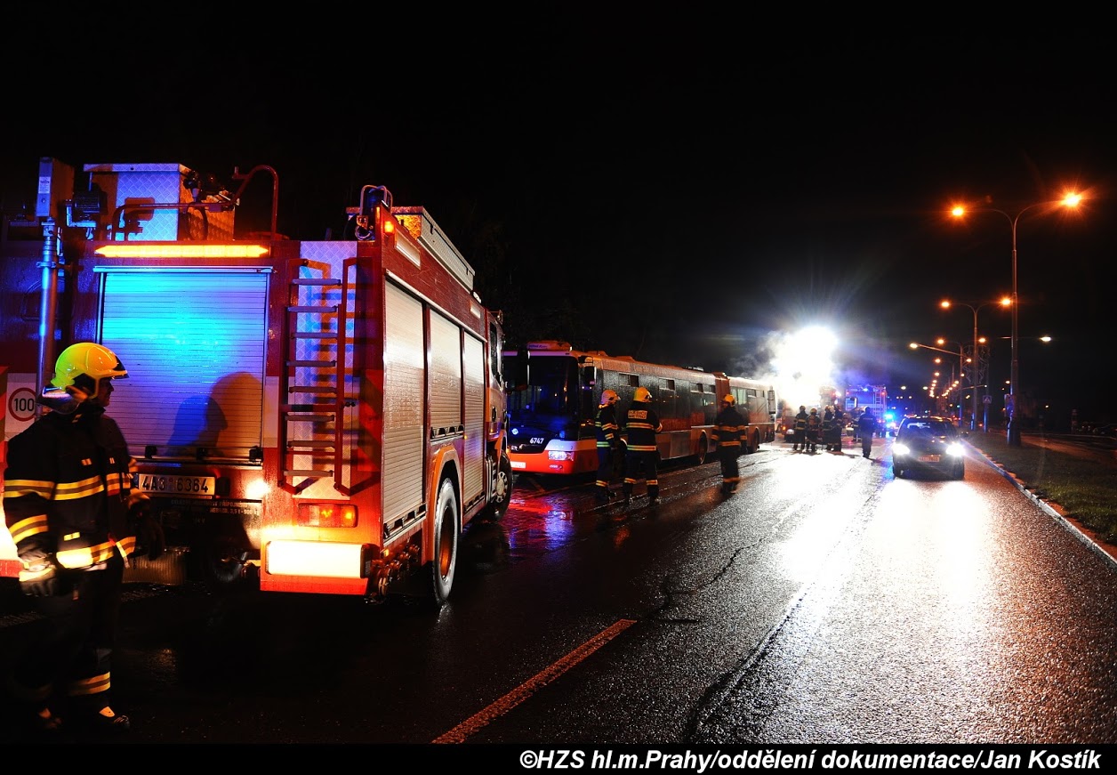 Požár v motorové části linkového autobusu MHD byl lokalizován přenosným hasicím přístrojem před příjezdem hasičů. Ti na likvidaci požáru použili tlakovou vodu. Během zásahu byla ulice Čimická obtížně průjezdná.