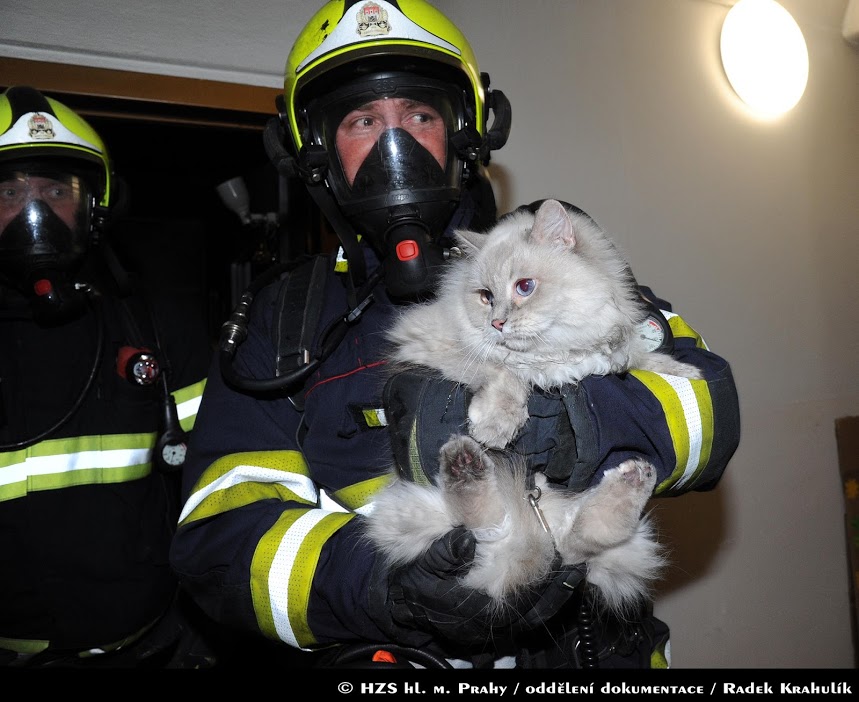 Hasiči také zachránili 4 kočky a psa. Požár poškodil vybavení bytu a způsobil škodu 200.000 korun. Příčinou byla nedbalost při používání otevřeného ohně.