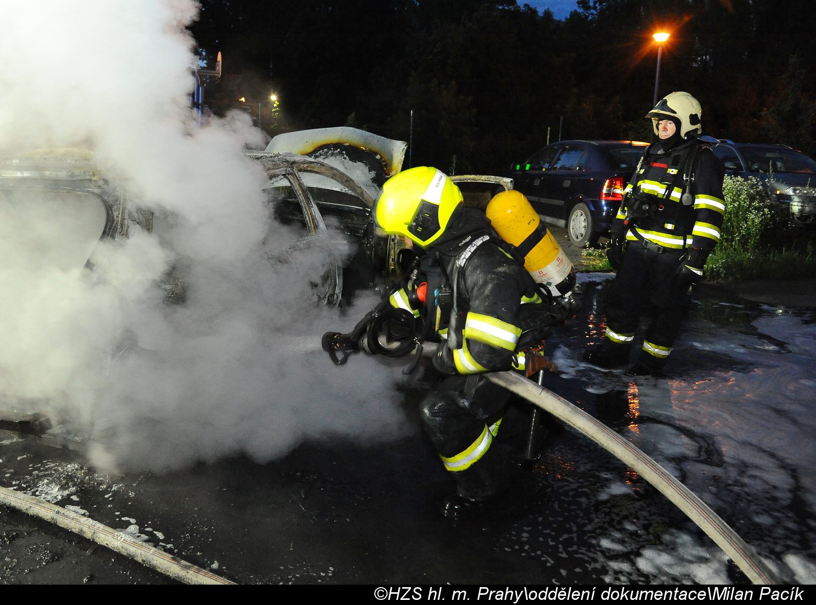 Dne 1.7.2017 v 4:04 hod zasahovala jednotka z holešovické stanice u požáru osobního automobilu v ul. Na břehu v pražských Vysočanech. Hasiči na likvidaci požáru nasadili 1 C proud v dýchací technice. Plamenným hořením bylo vozidlo zcela zničeno, ale vyšetřovatel na místě zjistil, že se jedná o vrak bez registračních značek a požár nezpůsobil velkou škodu. Sálavým teplem však byl poškozen vedle stojící osobní automobil, na kterém byla škoda odhadnuta na 20 000 Kč. Příčina požáru je předmětem dalšího šetření.