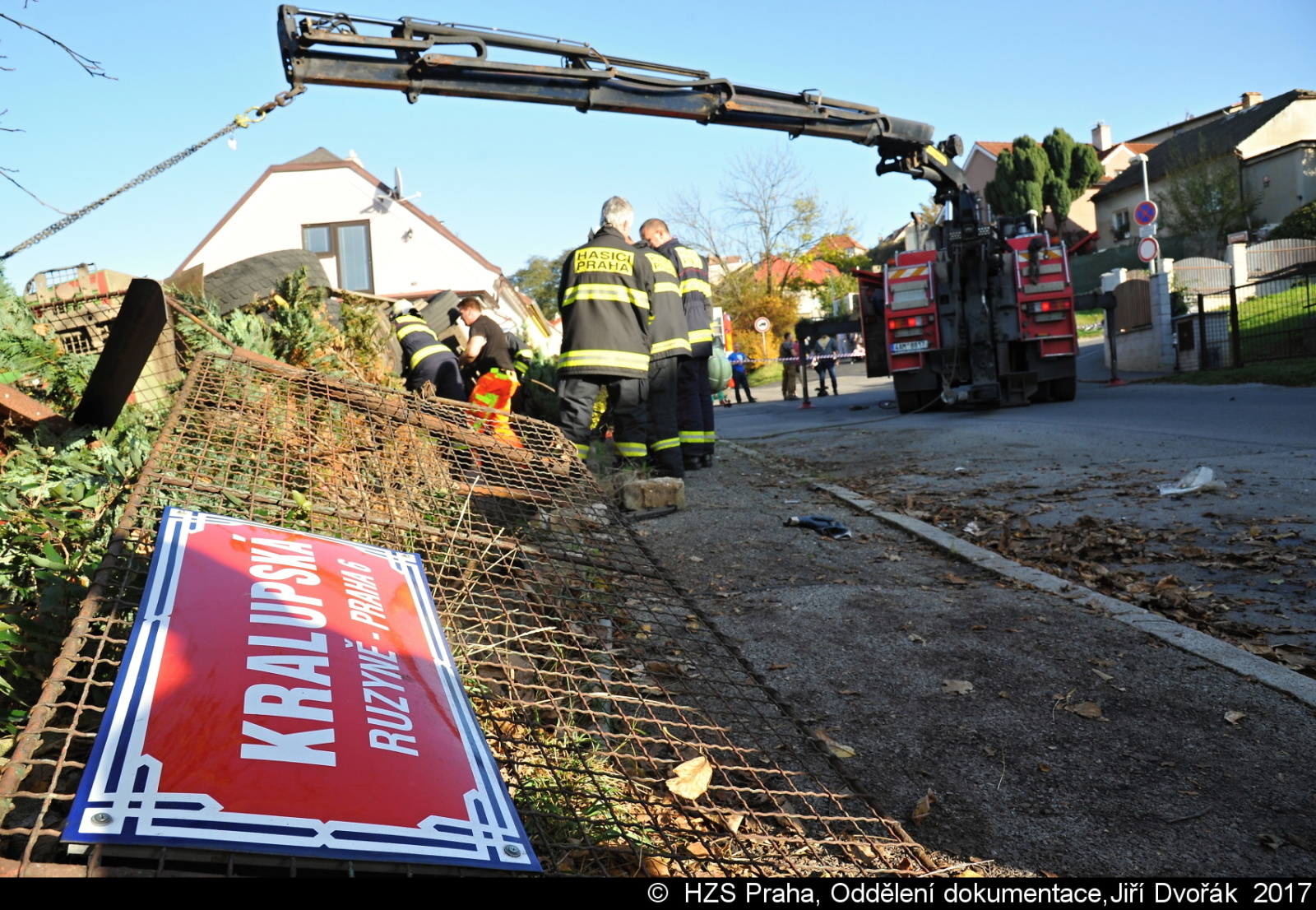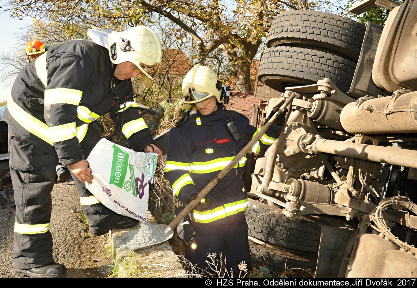 V úterý 17.10.2017, ve 12:48 hod byl vyhlášen poplach jednotkám HZS hl. m. Prahy a HZS Letiště Václava Havla. V ul. Kralupská byl nahlášen požár převráceného popelářského vozu. Po příjezdu jednotek na místo se informace o požáru nepotvrdila. Jednalo se o převrácený popelářský vůz, ve kterém v době nehody nikdo neseděl a který skončil na boku na soukromé zahradě. Jednotky pomocí automobilového jeřábu zajistily vůz proti dalšímu pohybu, provedly protipožární opatření a zasypaly vyteklé pohonné hmoty.