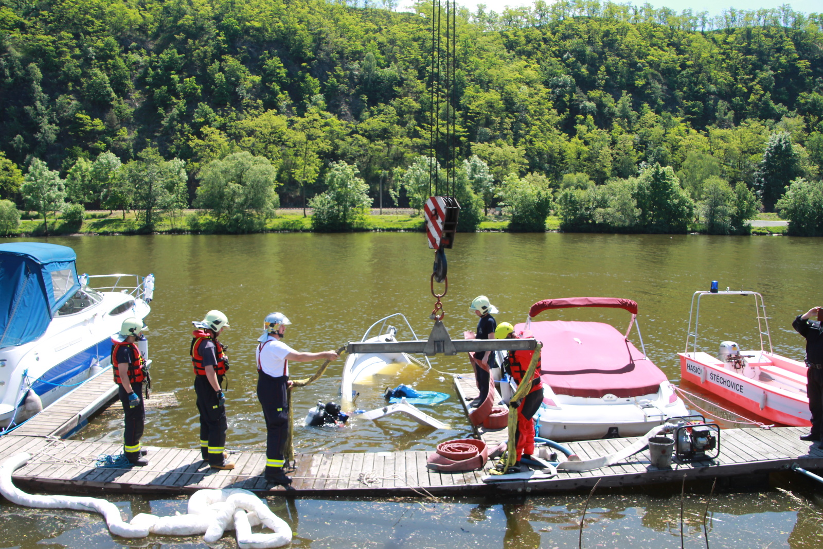 V pátek 26. května krátce po desáté hodině přijala operátorka tísňového volání Hasičského záchranného sboru Středočeského kraje oznámení o potopení motorového člunu u mola v Davli v okrese Praha-západ.