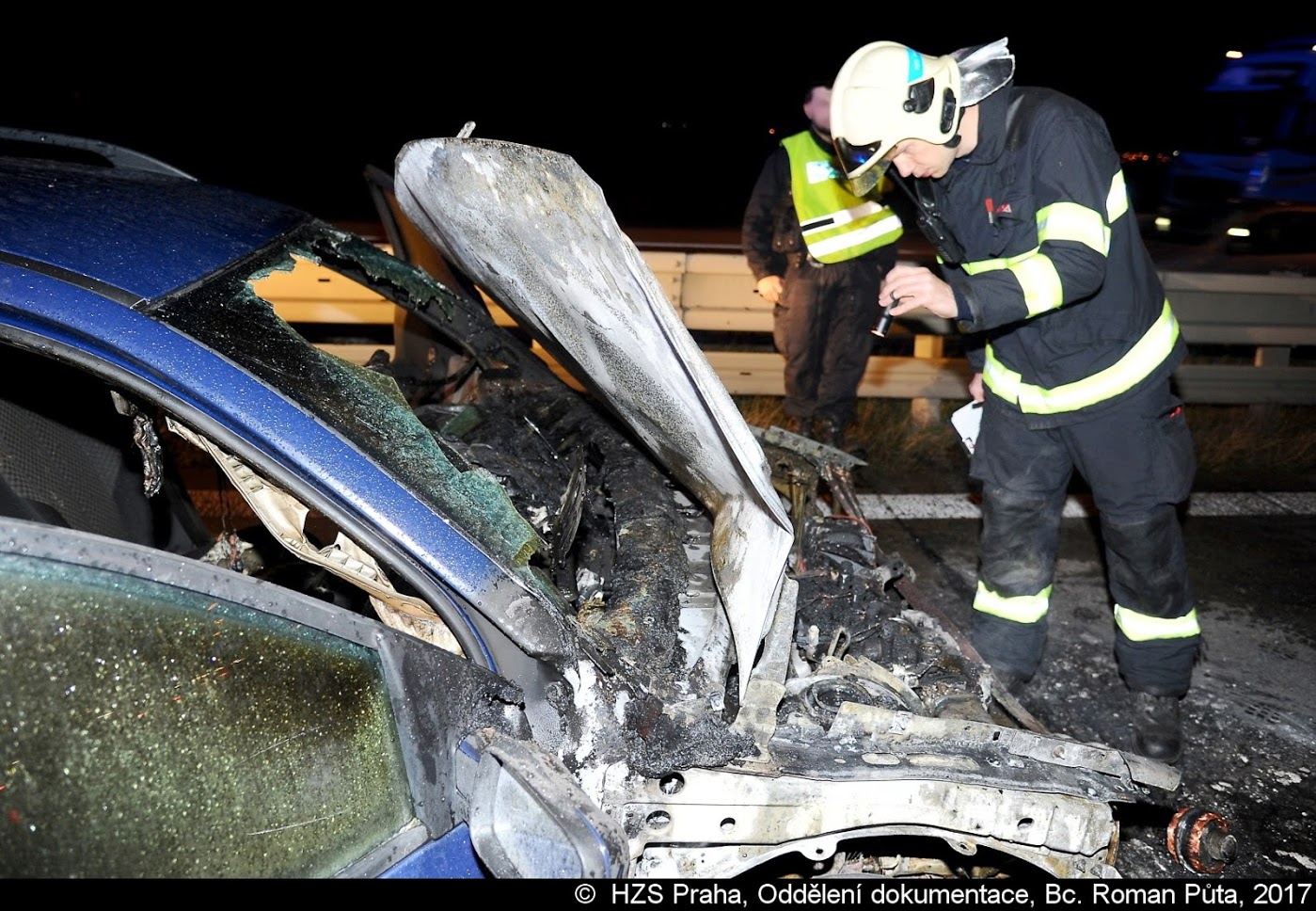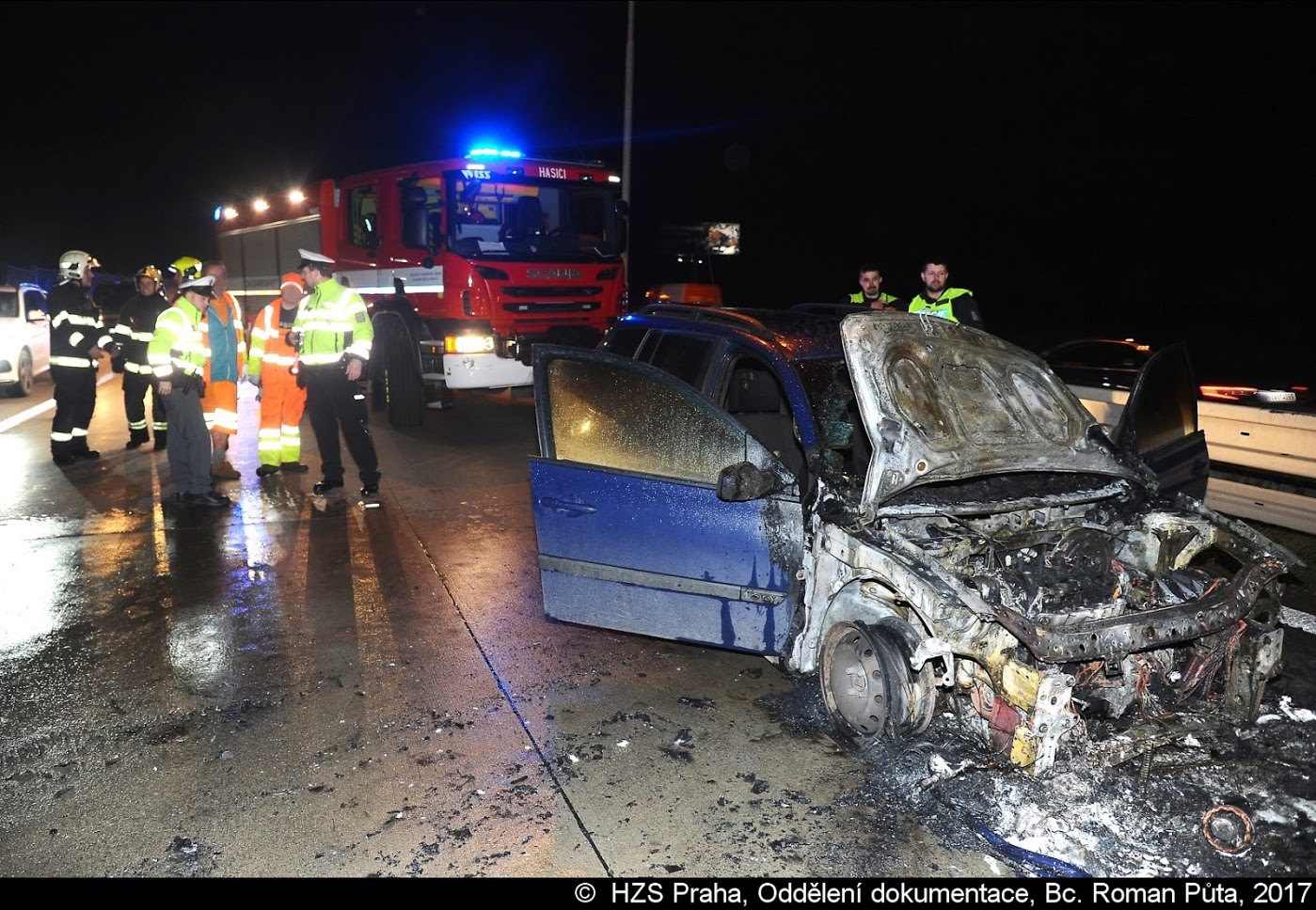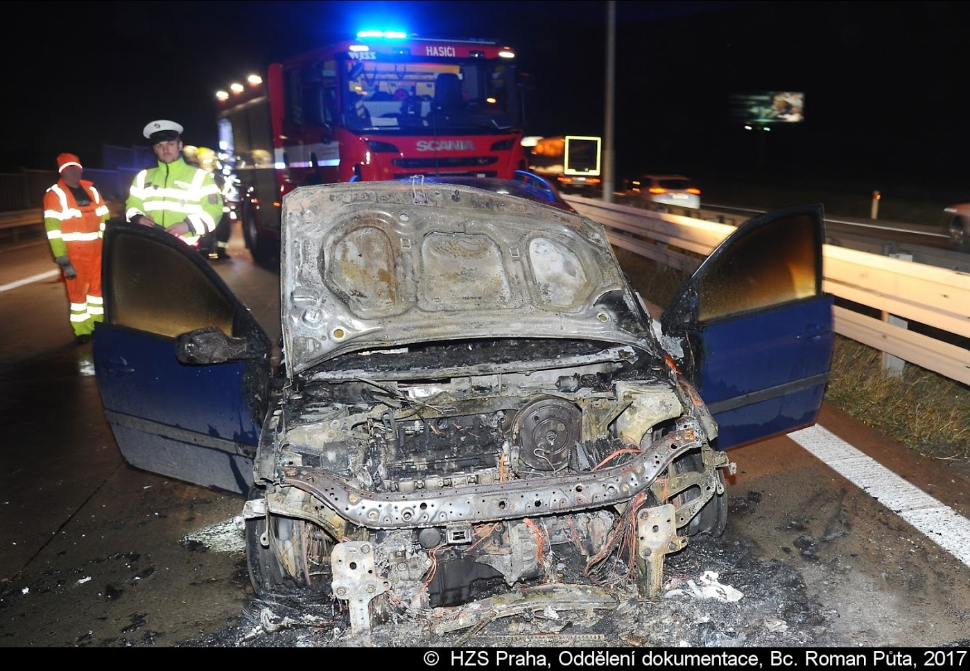 Jednotka pražských hasičů ze smíchovské stanice zasahovala dne 23.11.2017 od 16:47 hodin na Pražském okruhu v úrovni Řeporyjí u požáru osobního automobilu.