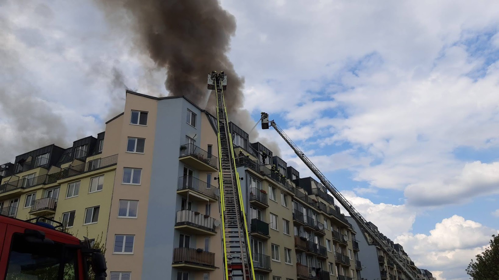 Praha 11, 2. května 2022 – Ve chvíli, kdy se mnozí obyvatelé chystali na odpolední klid, začal se nad ulicí Divišovská šířit hustý kouř a plameny pohltily střechu obytného domu. Požár, který vypukl kolem 15:30, se velmi rychle rozrostl na rozloze přibližně 50 x 50 metrů a ohrožoval nejen samotnou střechu, ale i bytové jednotky pod ní.