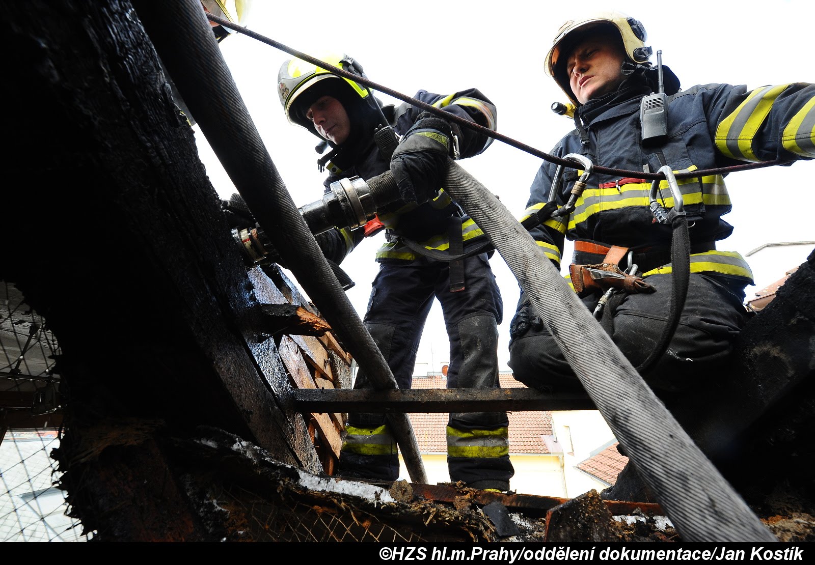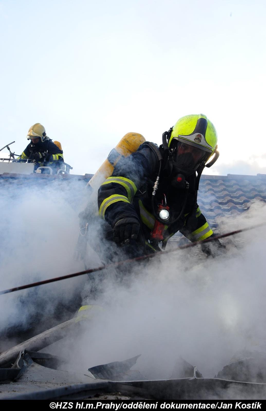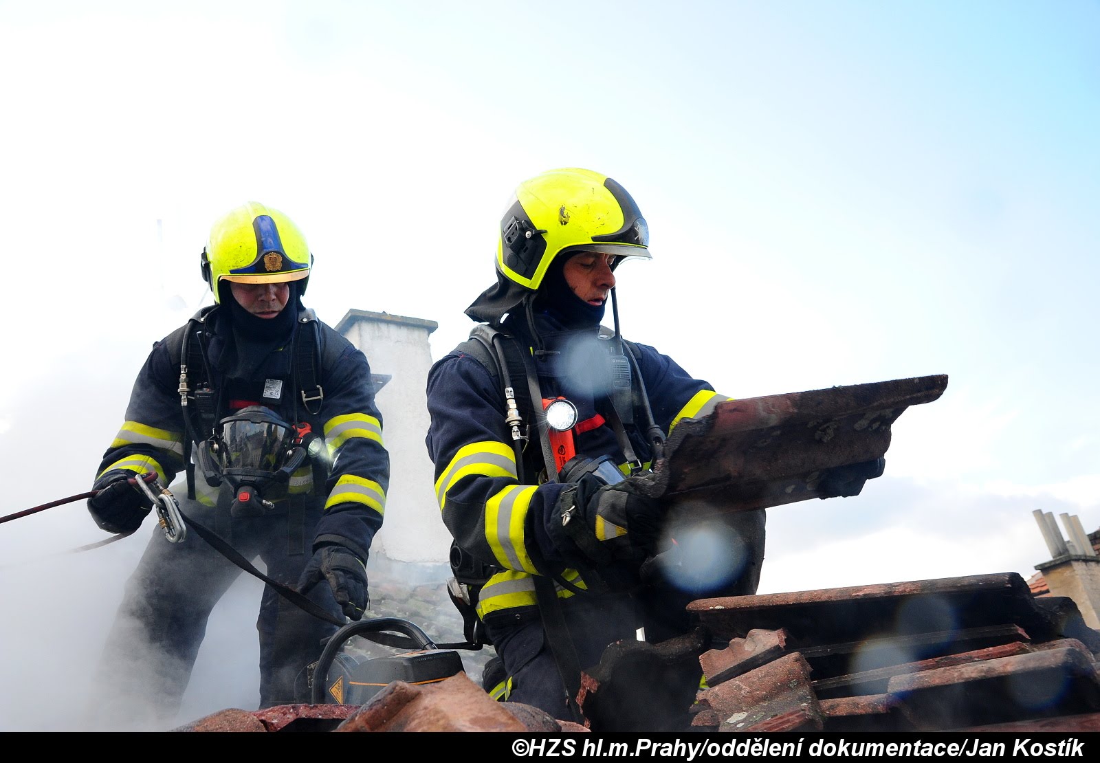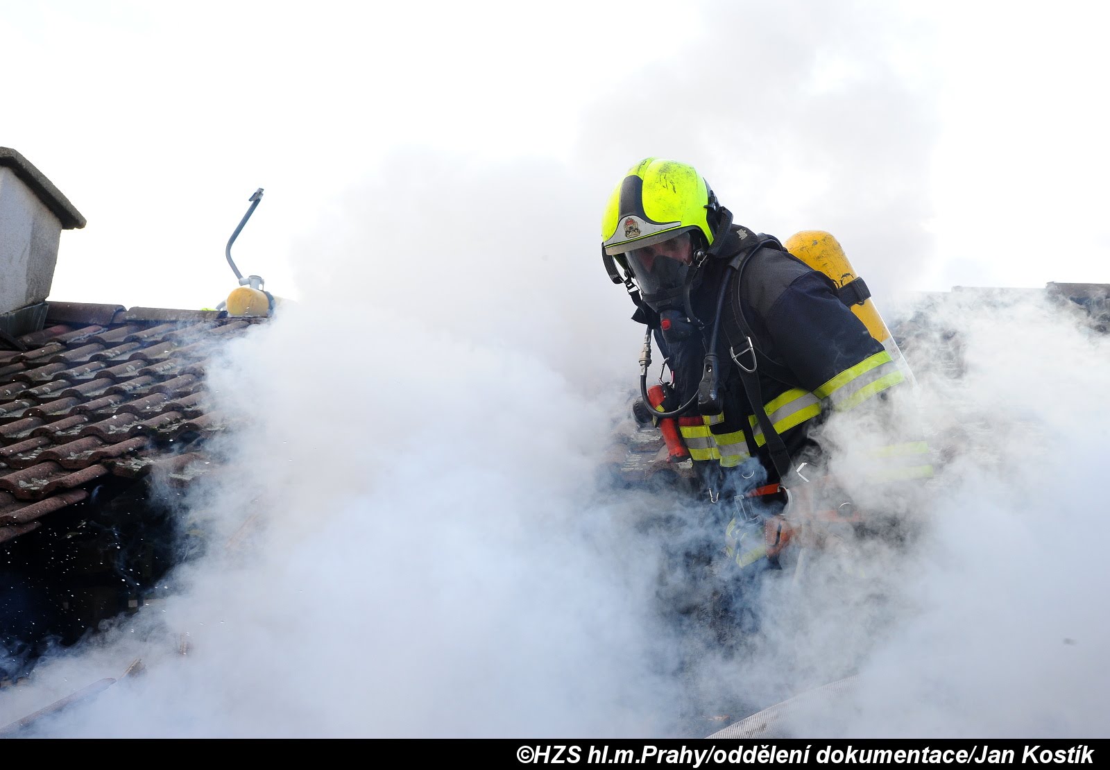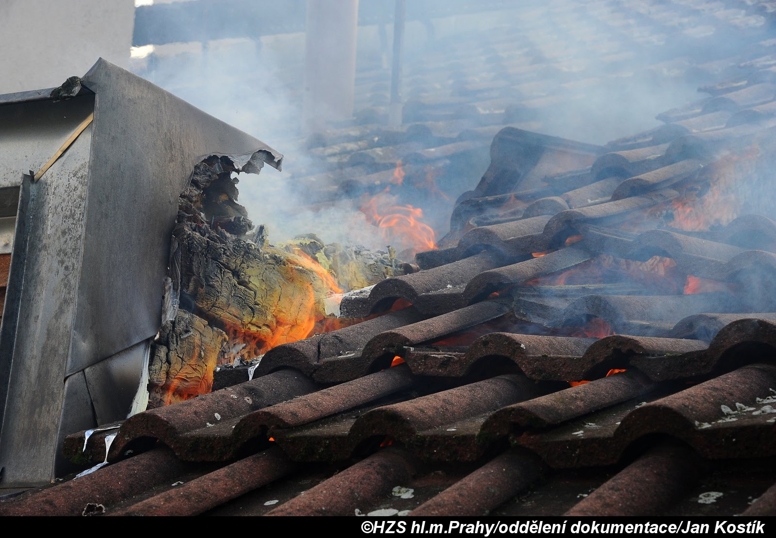 Požár digestoře se rozšířil na střechu obytného domu v Praze 2