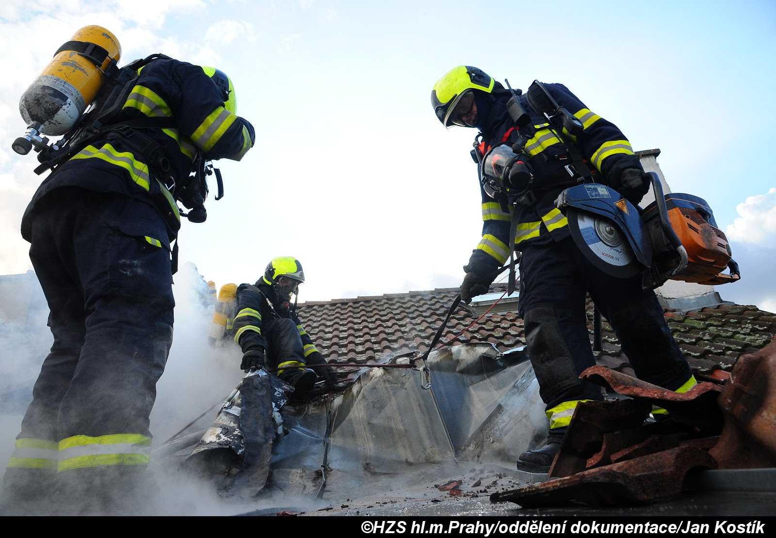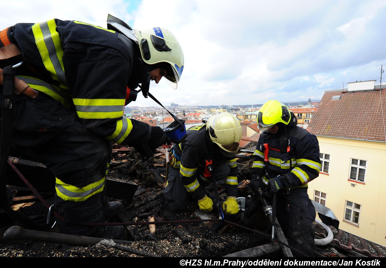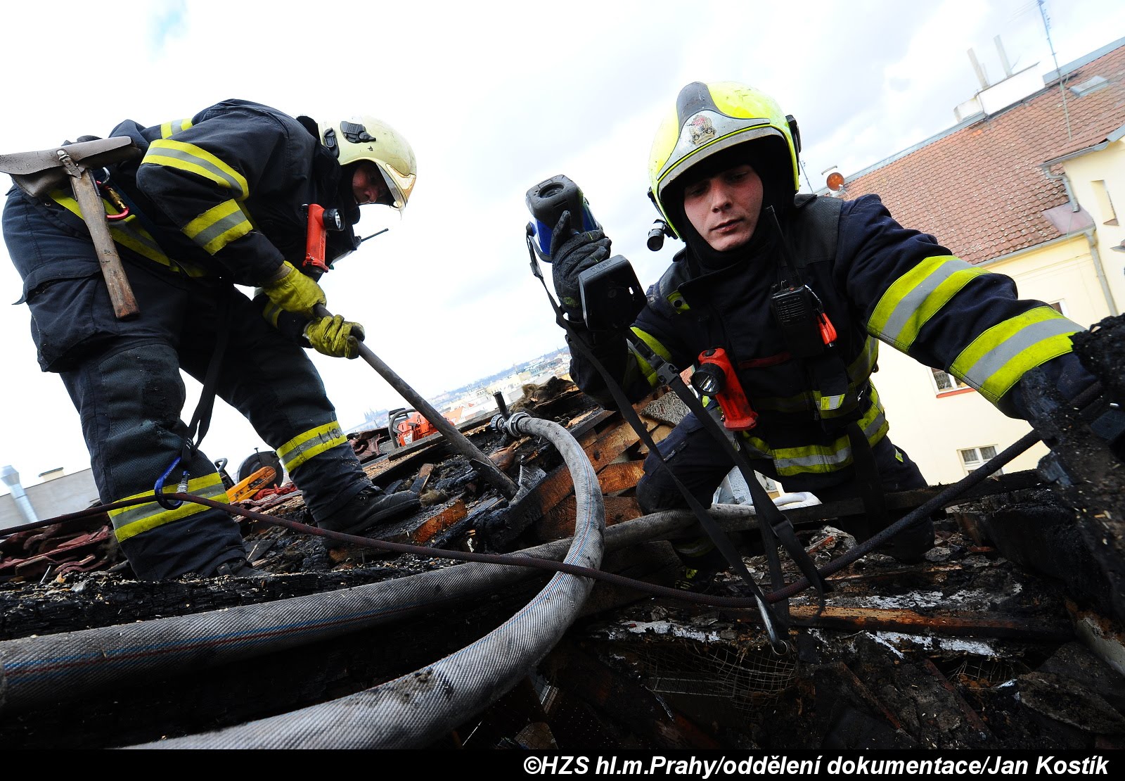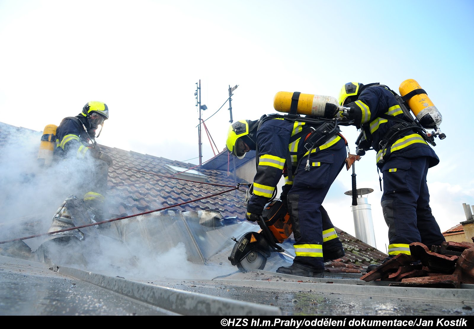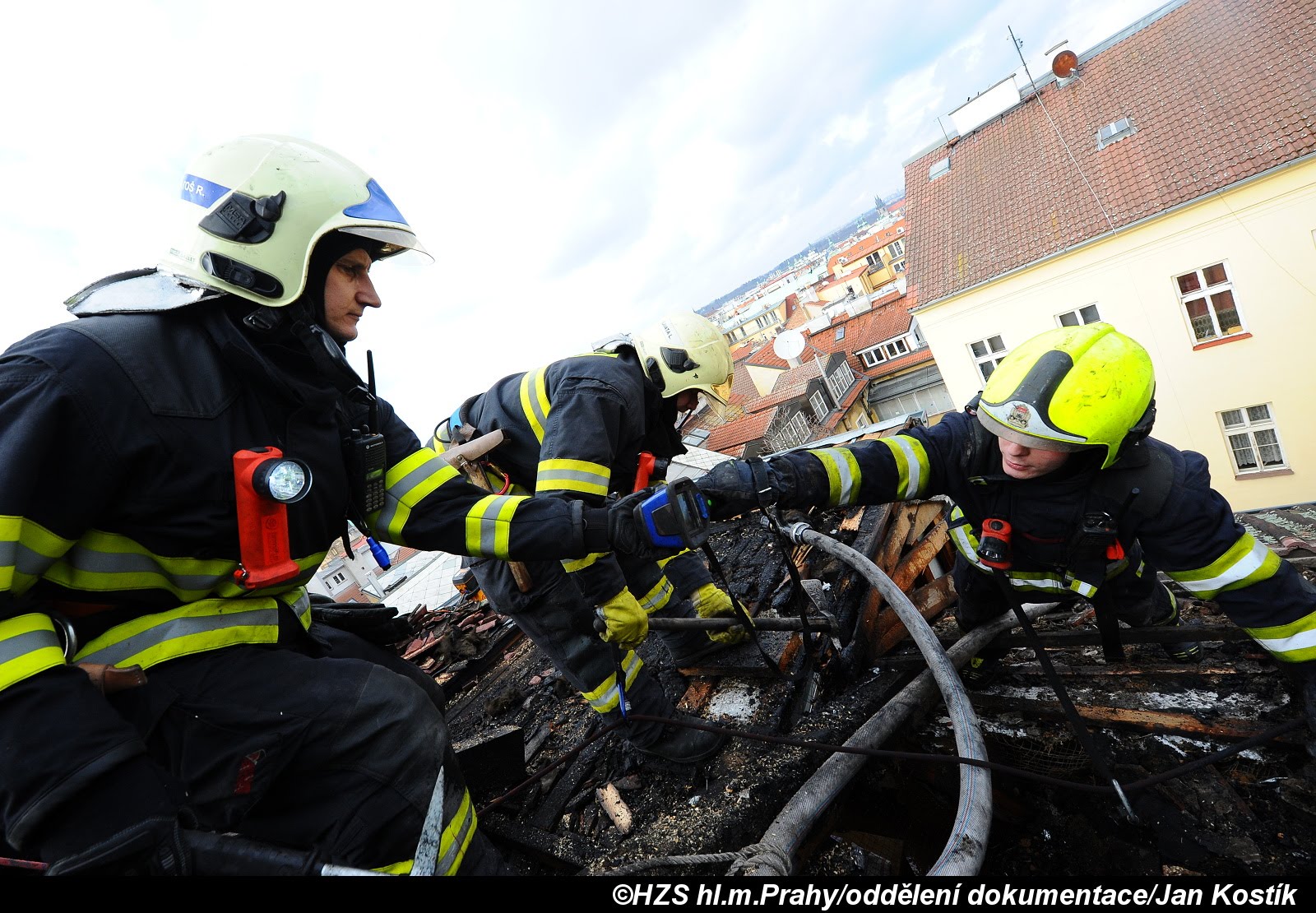 Požár digestoře se rozšířil na střechu obytného domu v Praze 2