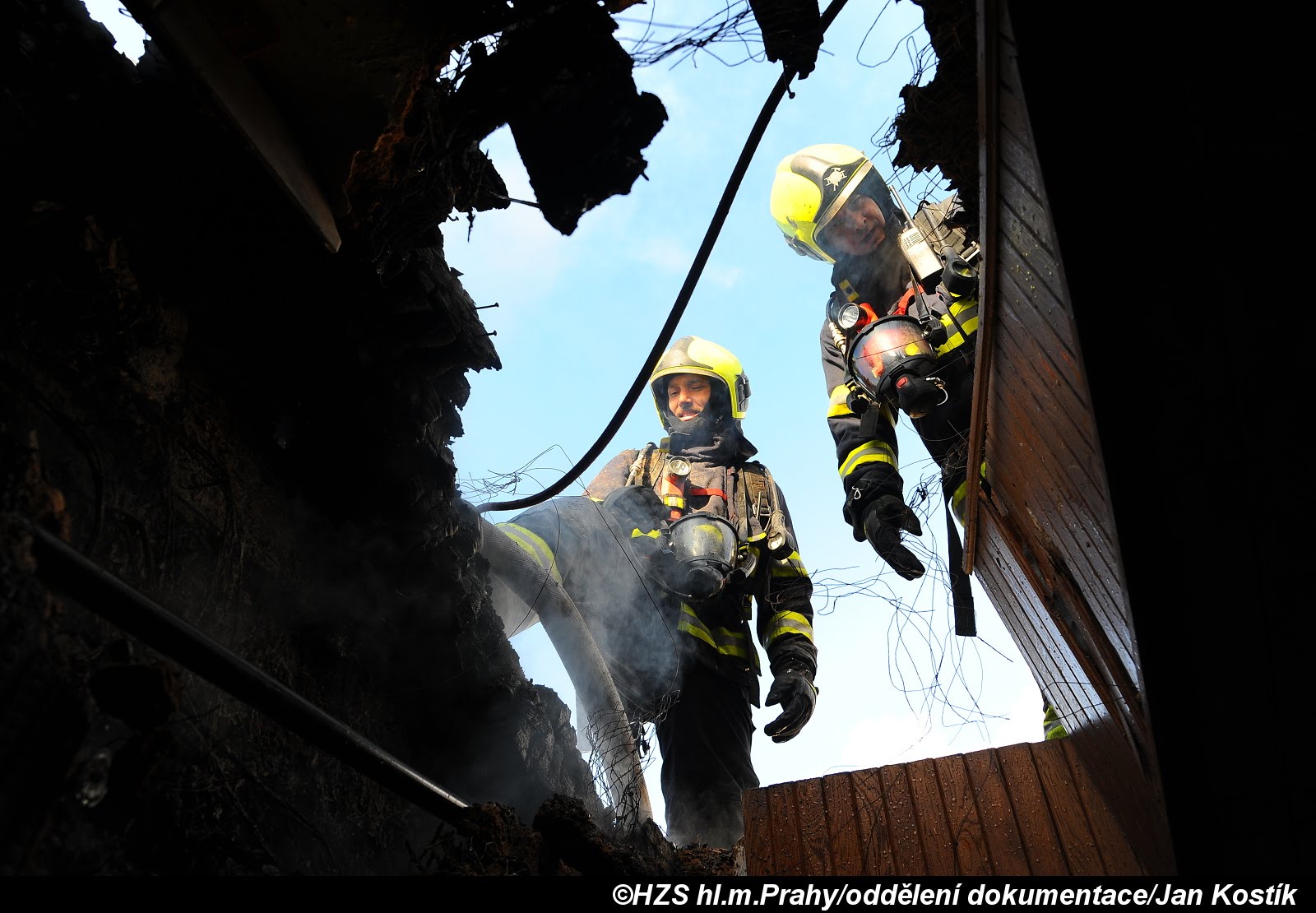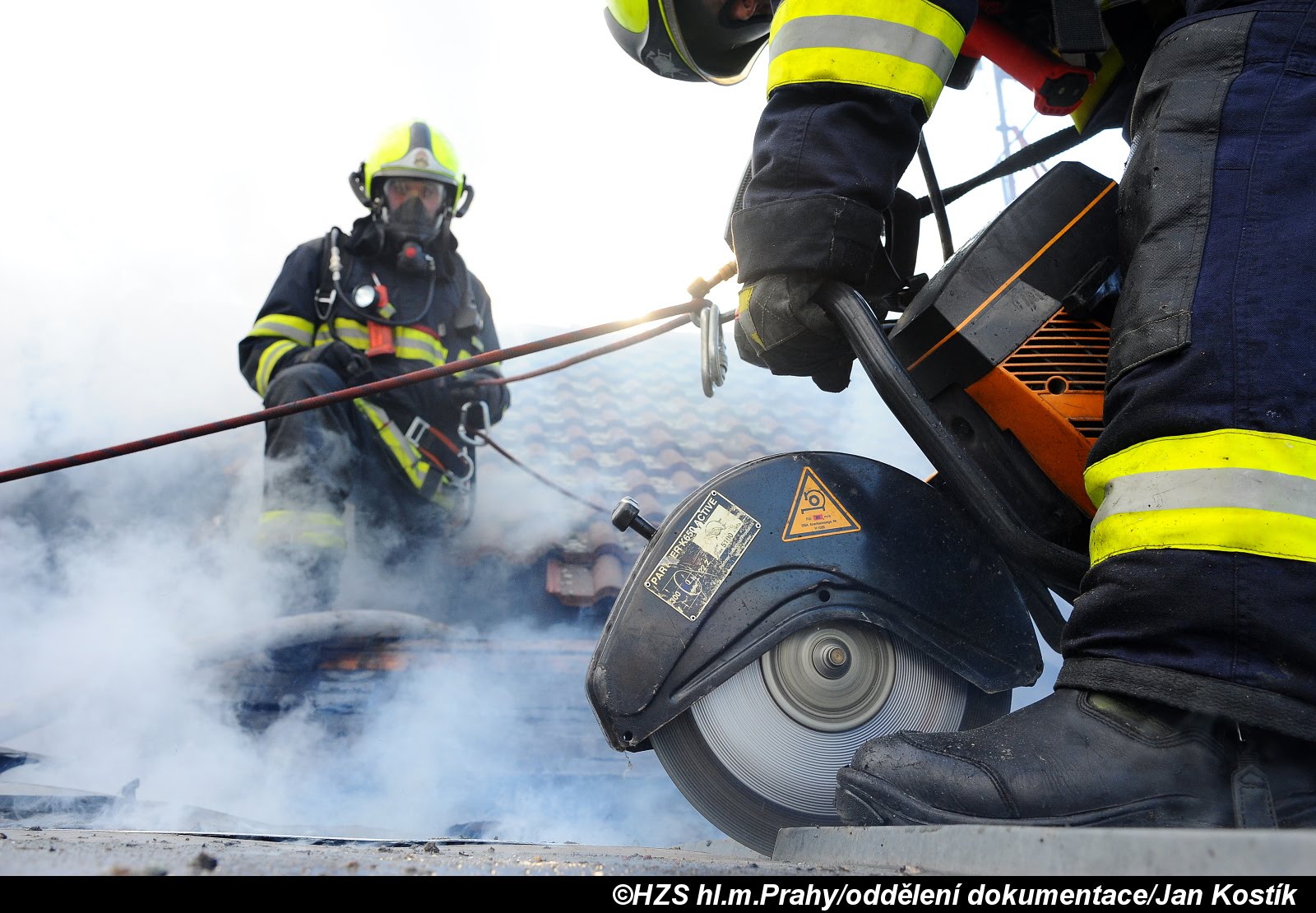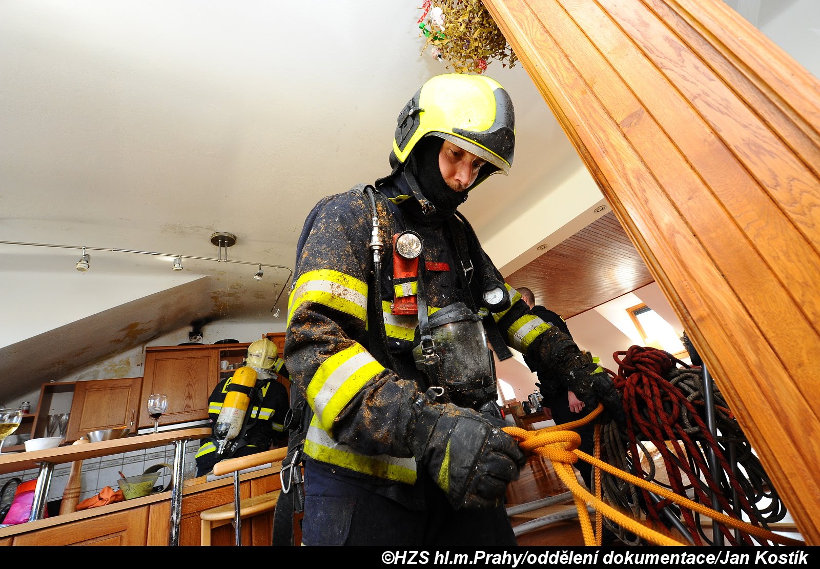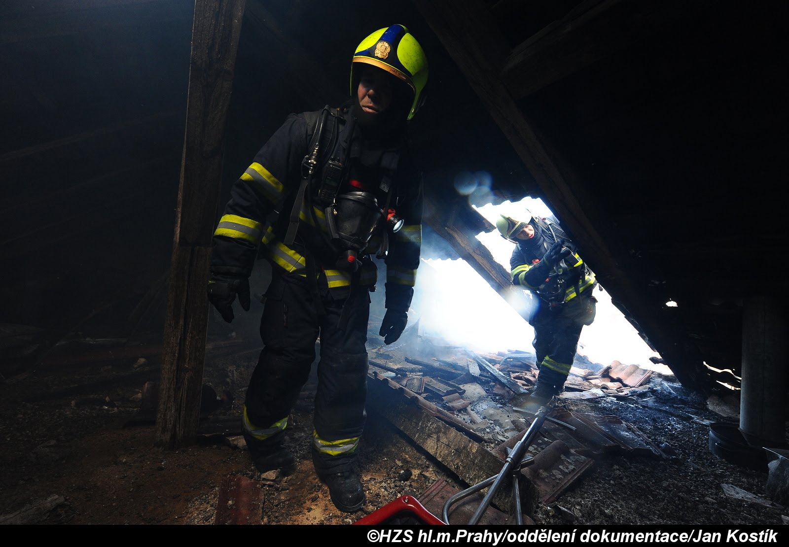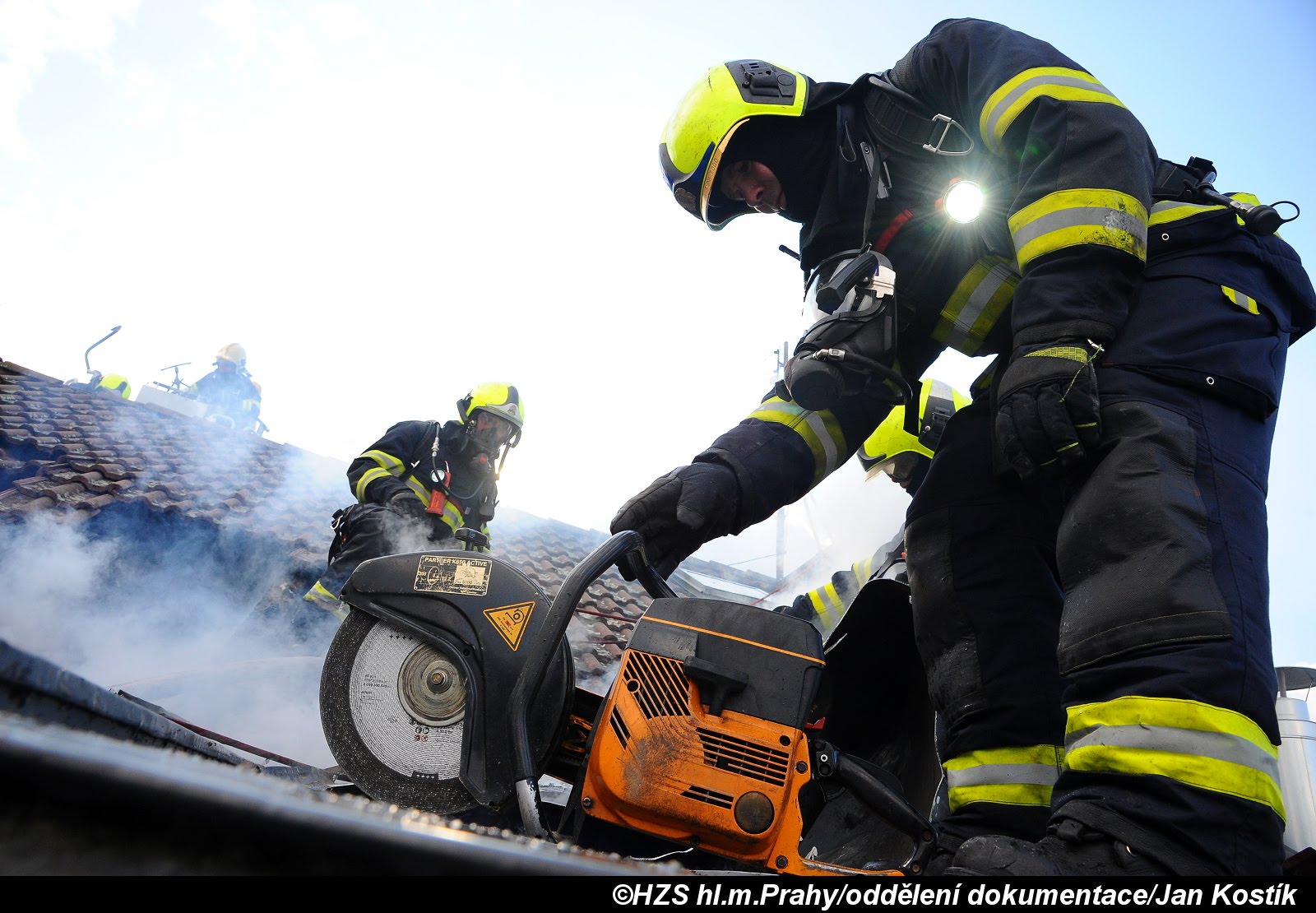 Požár digestoře se rozšířil na střechu obytného domu v Praze 2