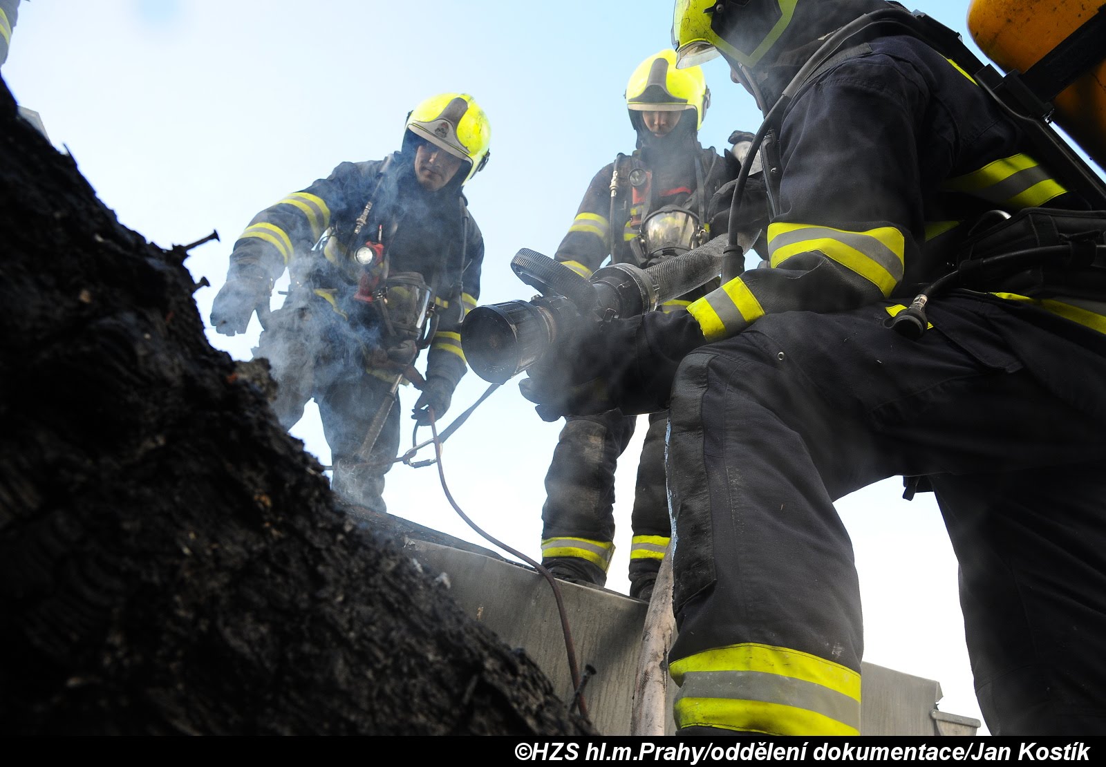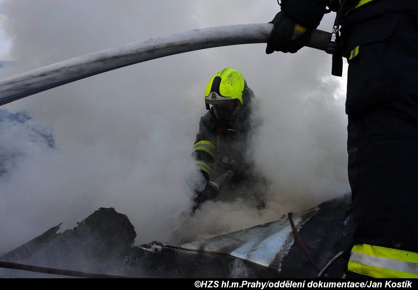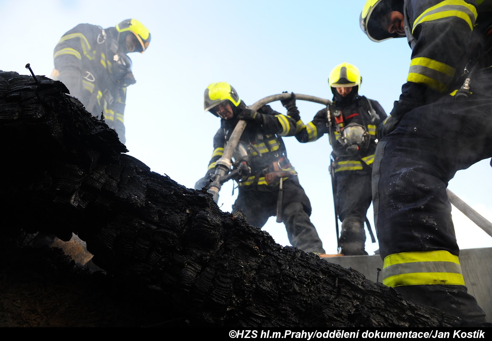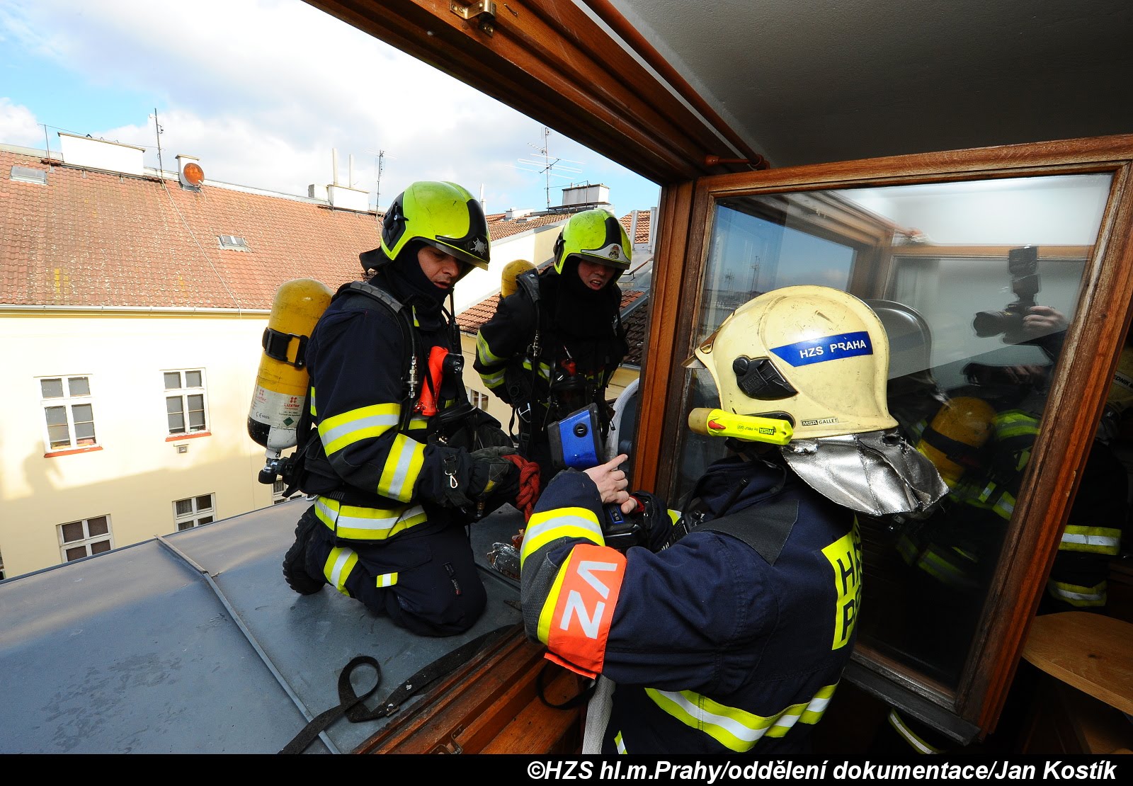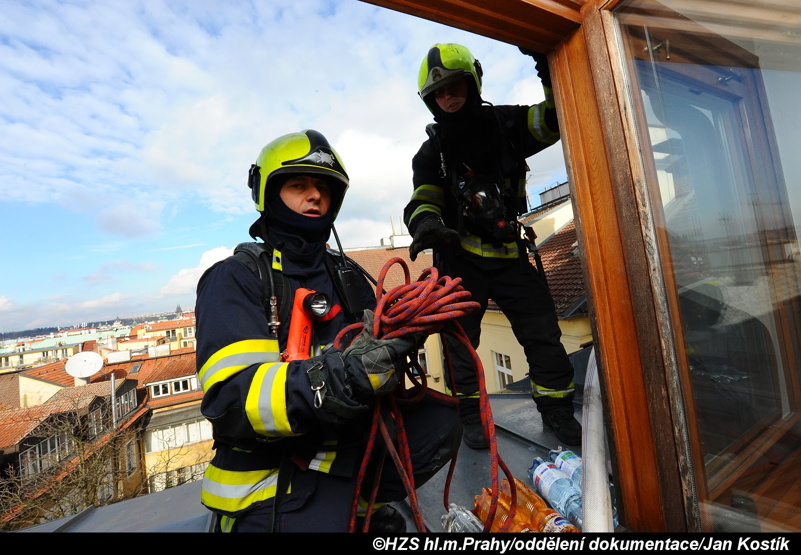Požár digestoře se rozšířil na střechu obytného domu v Praze 2